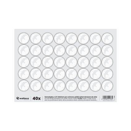 Samolepky na sklo ve tvaru UV koleček s motivem dravců o průměru 36 mm slouží k ochraně...