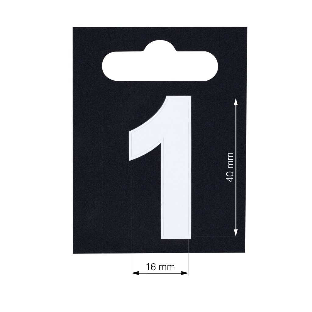 Číslo 1, formát 50x65mm, výška 40mm, bílé, samolepka