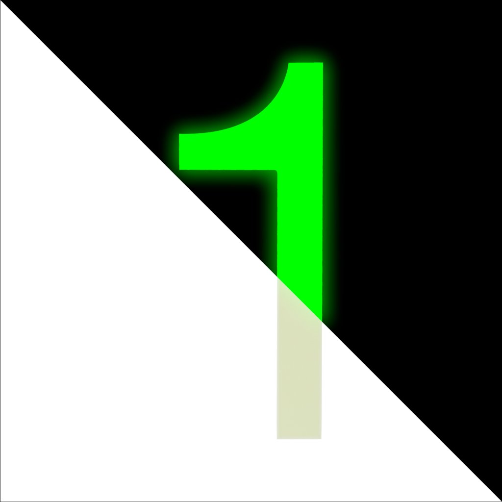 Číslo 1, výška 110 mm, fotoluminiscenční, samolepicí