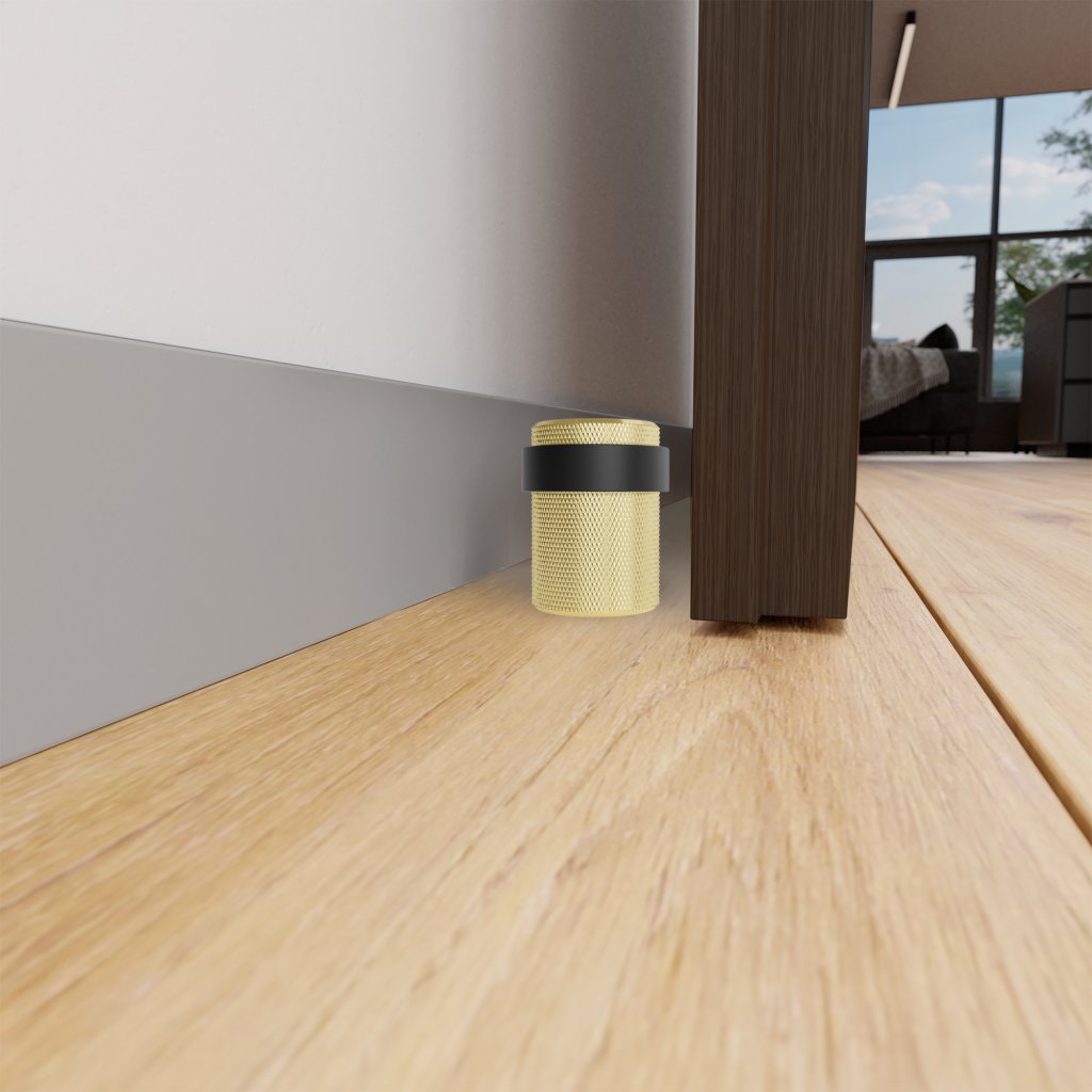 Tato zarážka se pyšní moderním, ale zároveň jednoduchým vzhledem, díky kterému se skvěle hodí do každého bytu, domu či kanceláře. Její elegantní mosazné provedení doplněné vroubkovanou strukturou dodává zarážce sofistikovaný a stylový nádech, který ozvláštní každý interiér.