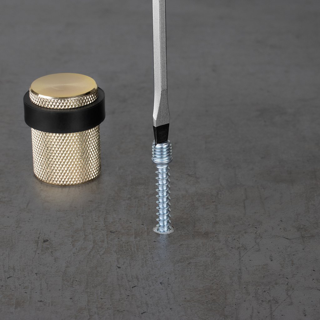 Díky přiloženému montážnímu materiálu, který zahrnuje hmoždinky a šrouby, je instalace zarážky rychlá a snadná. Zarážka bezpečně drží na všech typech podlah, kde je možnost instalace vrtáním.