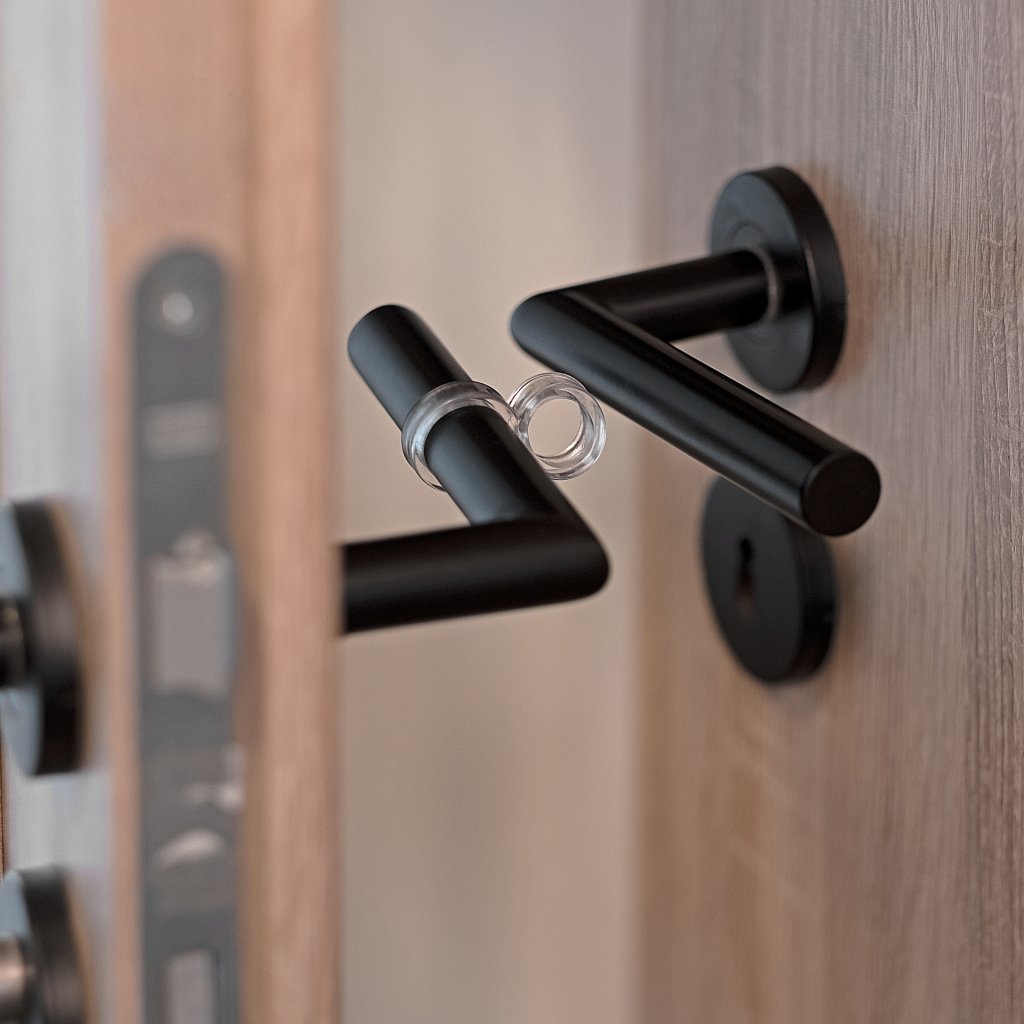 Nenápadné dveřní zarážky na kliku jsou z kvalitního a elastického plastu. Zarážku navléknete na kulatou nebo oválnou kliku a posunete do požadované polohy. Zarážka pevně a bezpečně sedí na klice. Její instalace je velmi jednoduchá, stejně tak je i lehce odnímatelná.