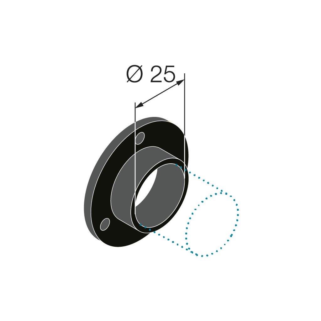 Držák šatní tyče s přírubou, průměr 25mm, plast, černý, 2 ks