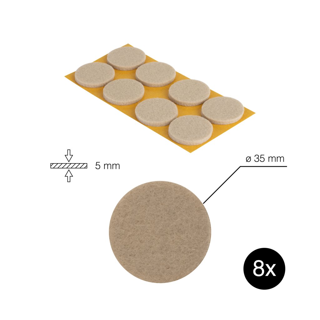 Filcové podložky, průměr 35mm, samolepicí, béžové, 8 ks