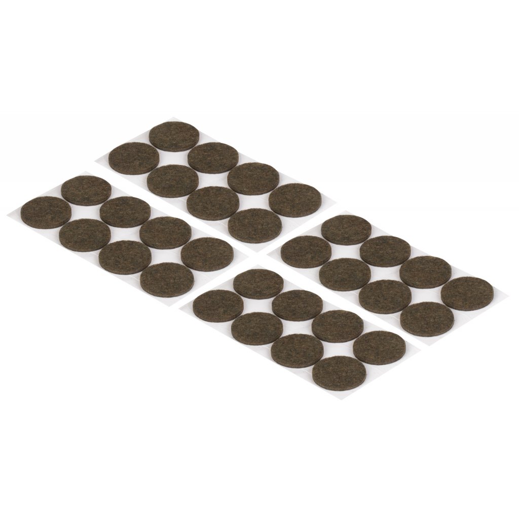 Filcové podložky, průměr 30mm, samolepicí, hnědé, 32 ks
