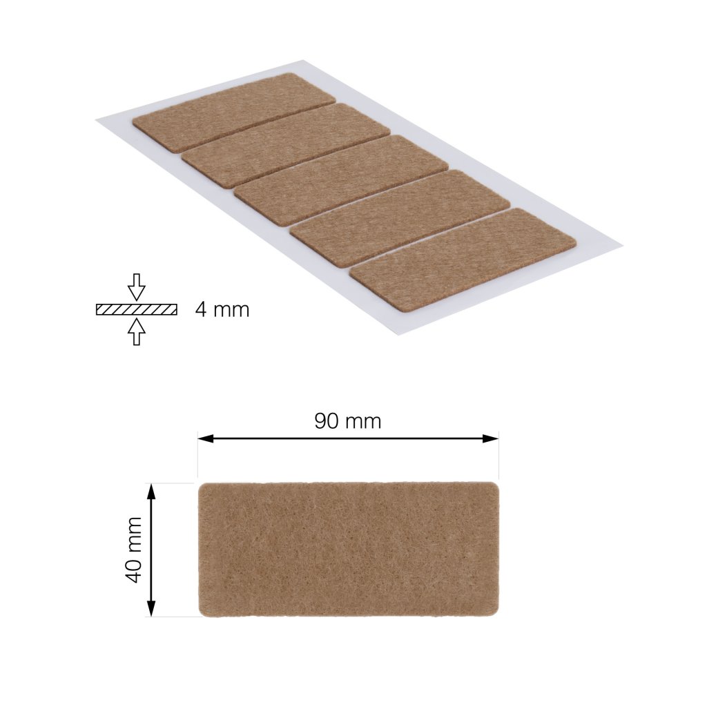 Filcové podložky 40x90mm, samolepicí, hnědé, 5 ks