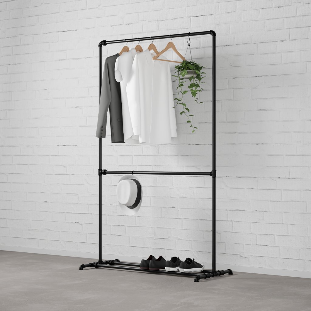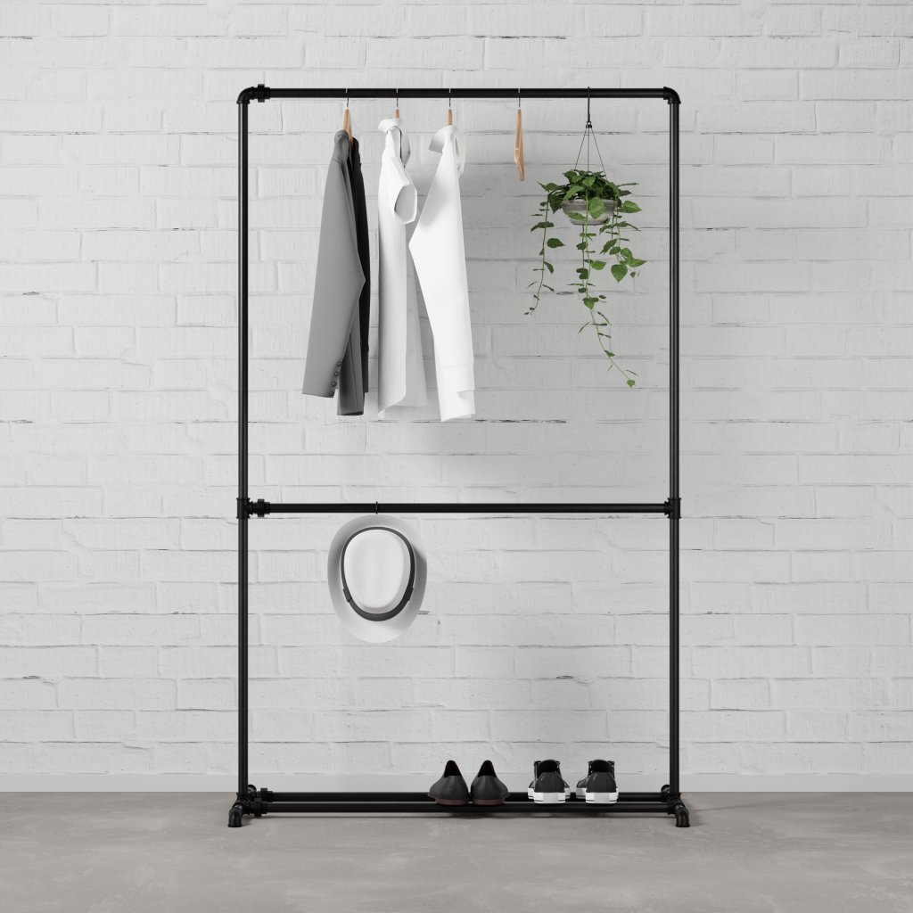FREJA I - Stojan na šaty Rusticline s tyčí na boty, volně stojící, 1100x1810mm