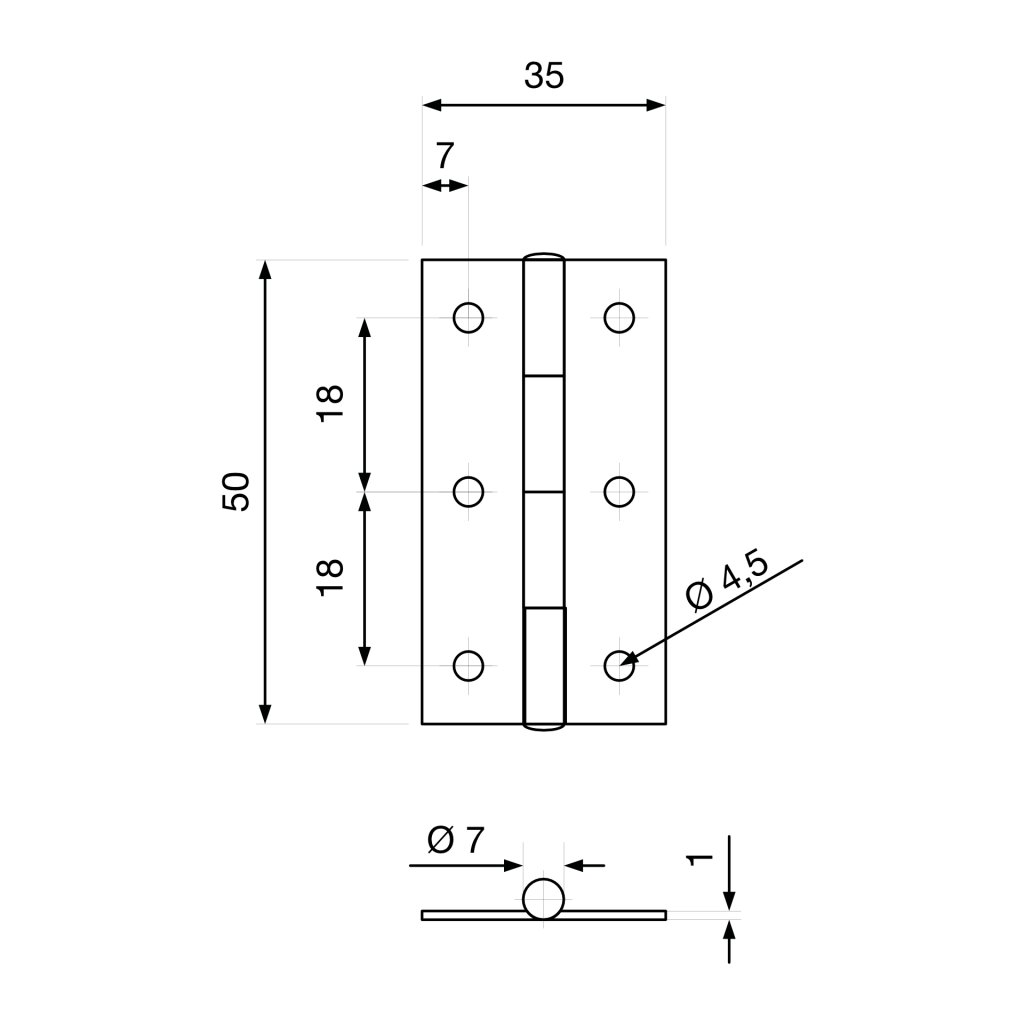 Nerezový kloubový závěs o rozměru 35x50 mm pro uchycení různých dveří, dvířek u nábytku/beden v...