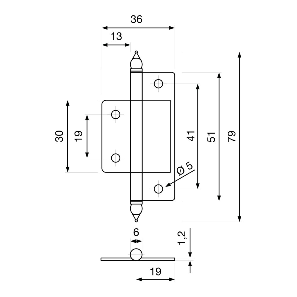Lamelový závěs 50x19mm, brynýr, 2 ks