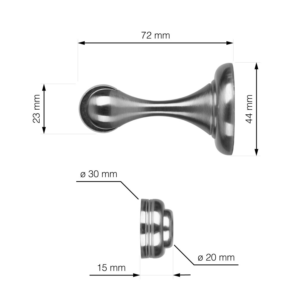 Zarážka je určena pro standardní interiérové dveře, síla magnetu je 5,5 - 6 kg.