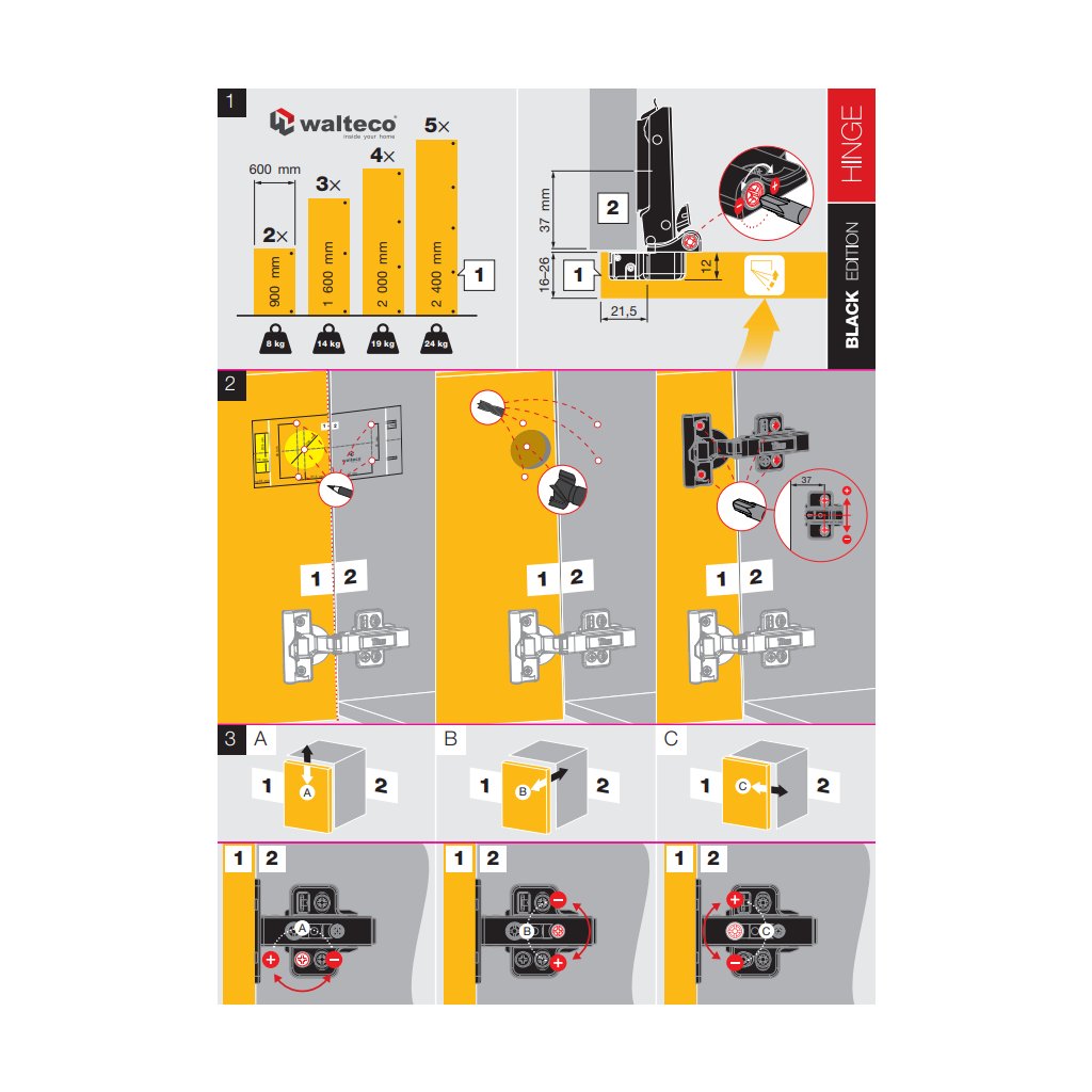 - Vhodný pro tloušťku dvířek 16-26 mm