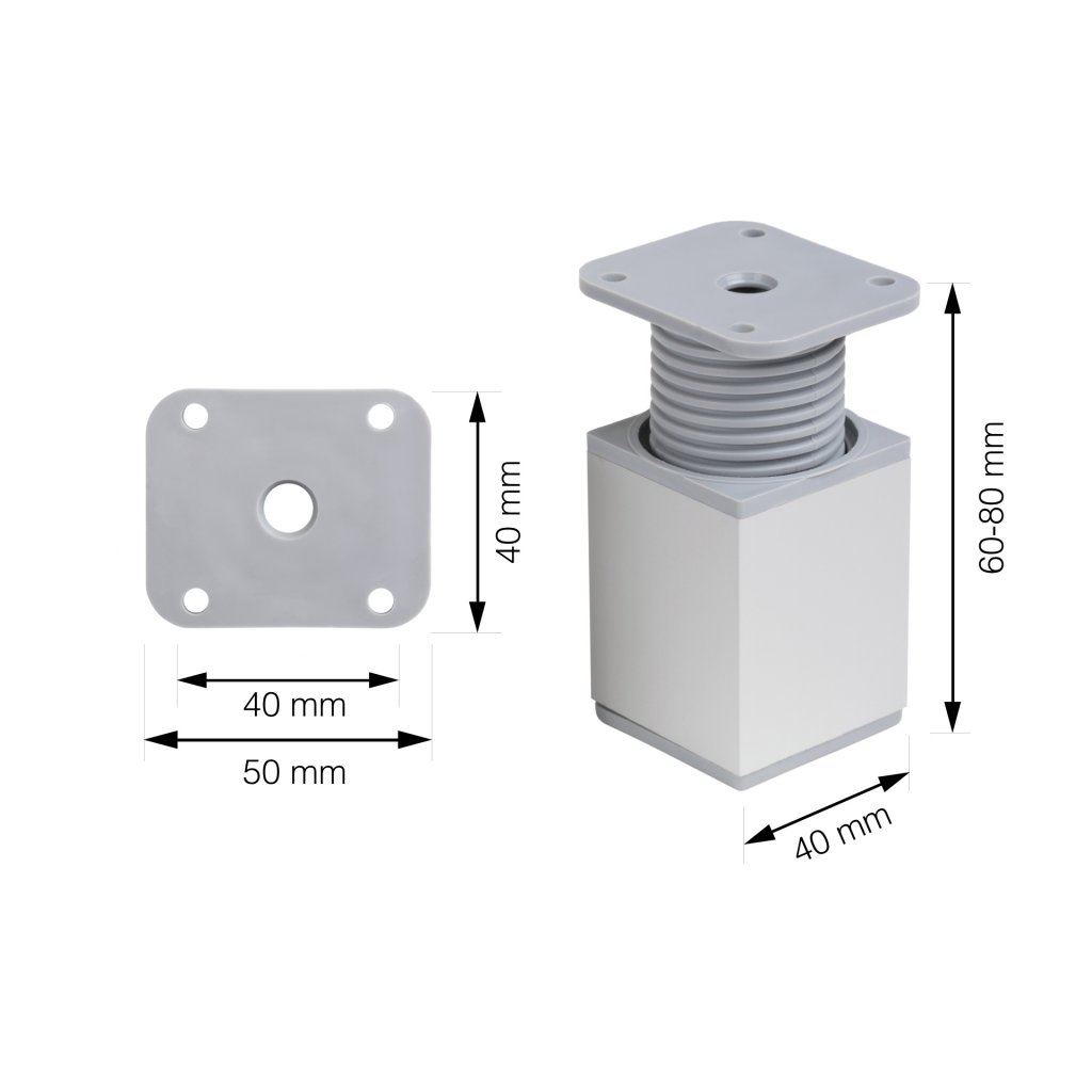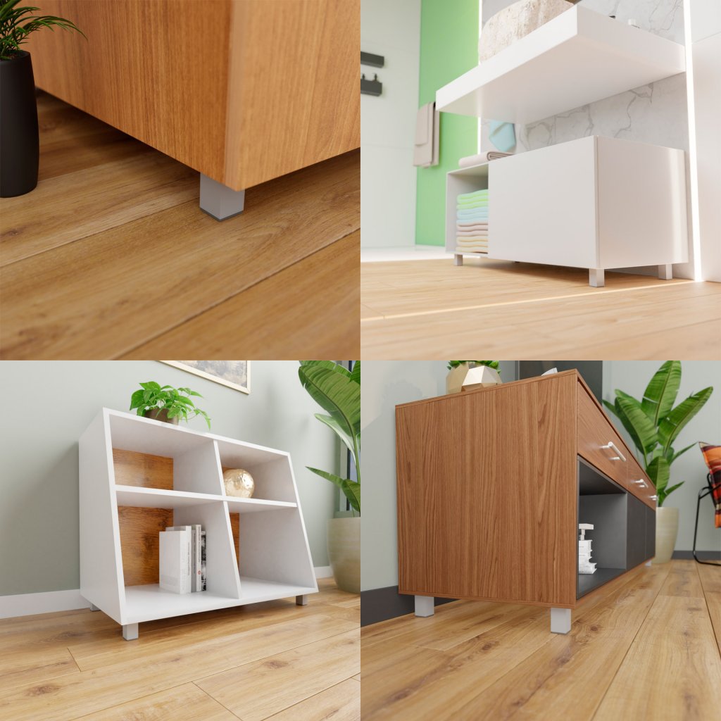 Použití: Plastové nábytkové nohy s nastavitelnou výškou se skvěle hodí pro elevaci skříněk, skříní i komod a dodají tak vašemu interiéru nový svěží nádech. Díky nohám stojí nábytek stabilně a bez viklání na každém povrchu. Uplatníte je i u kreativních DIY projektů.