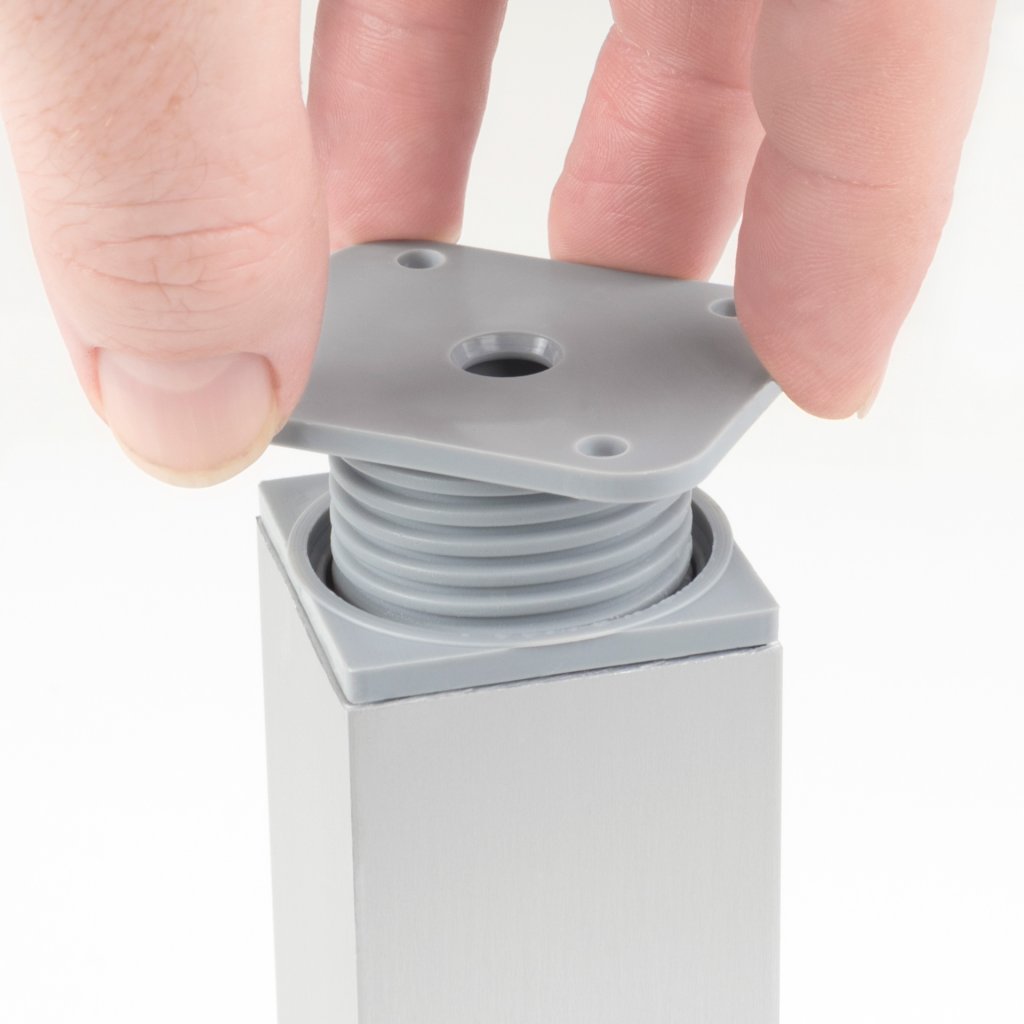 Hranatá plastová nábytková noha v hliníkovém provedení s nastavitelnou výškou je ideální na vyrovnání či přizpůsobení se nerovným povrchům/podlahám.