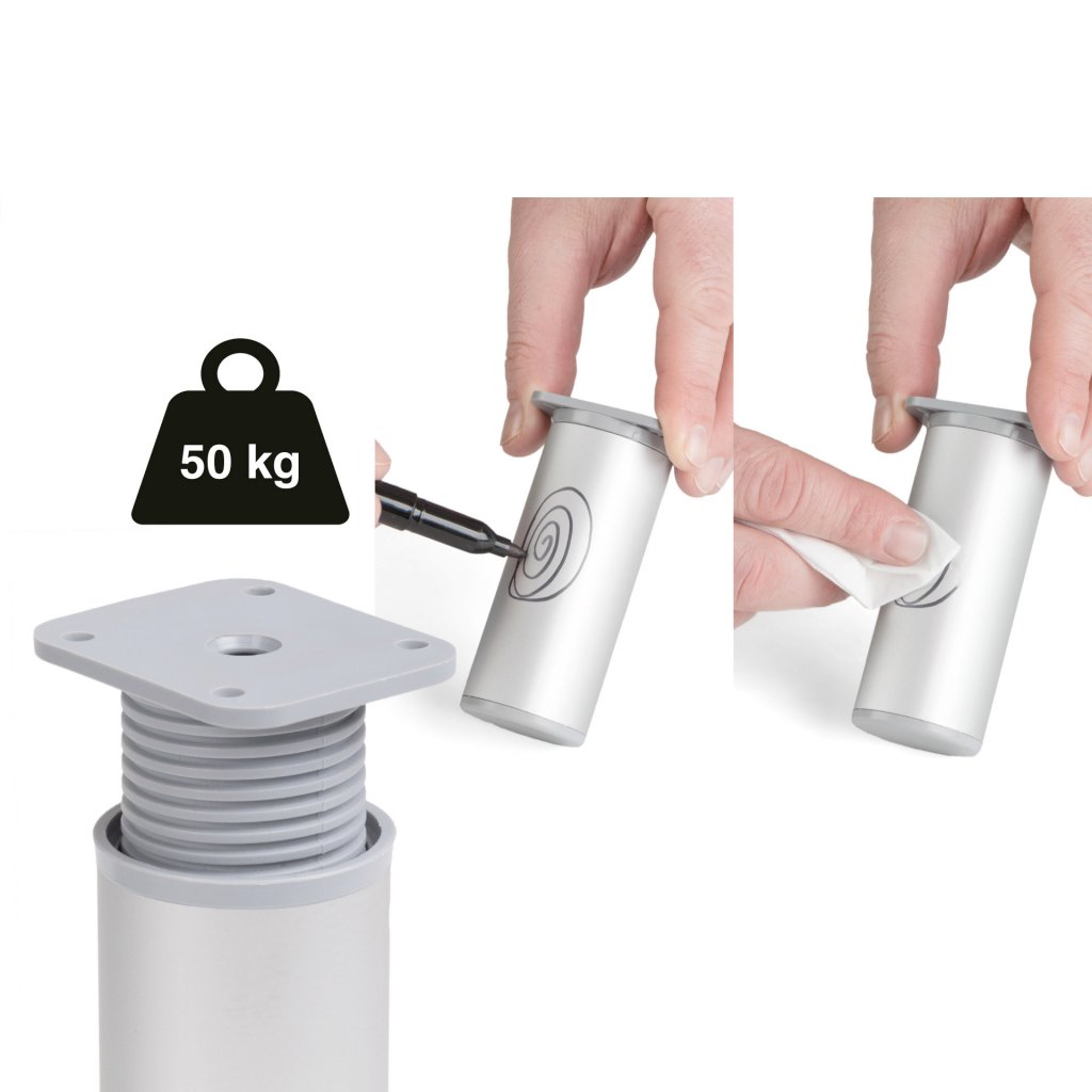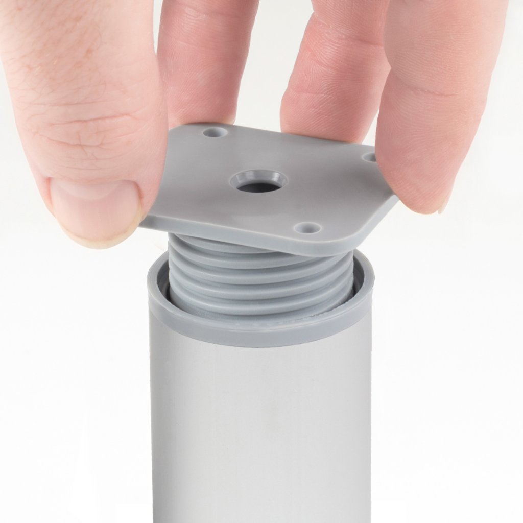 Kulatá plastová nábytková noha v hliníkovém provedení s nastavitelnou výškou je ideální na vyrovnání či přizpůsobení se nerovným povrchům/podlahám.