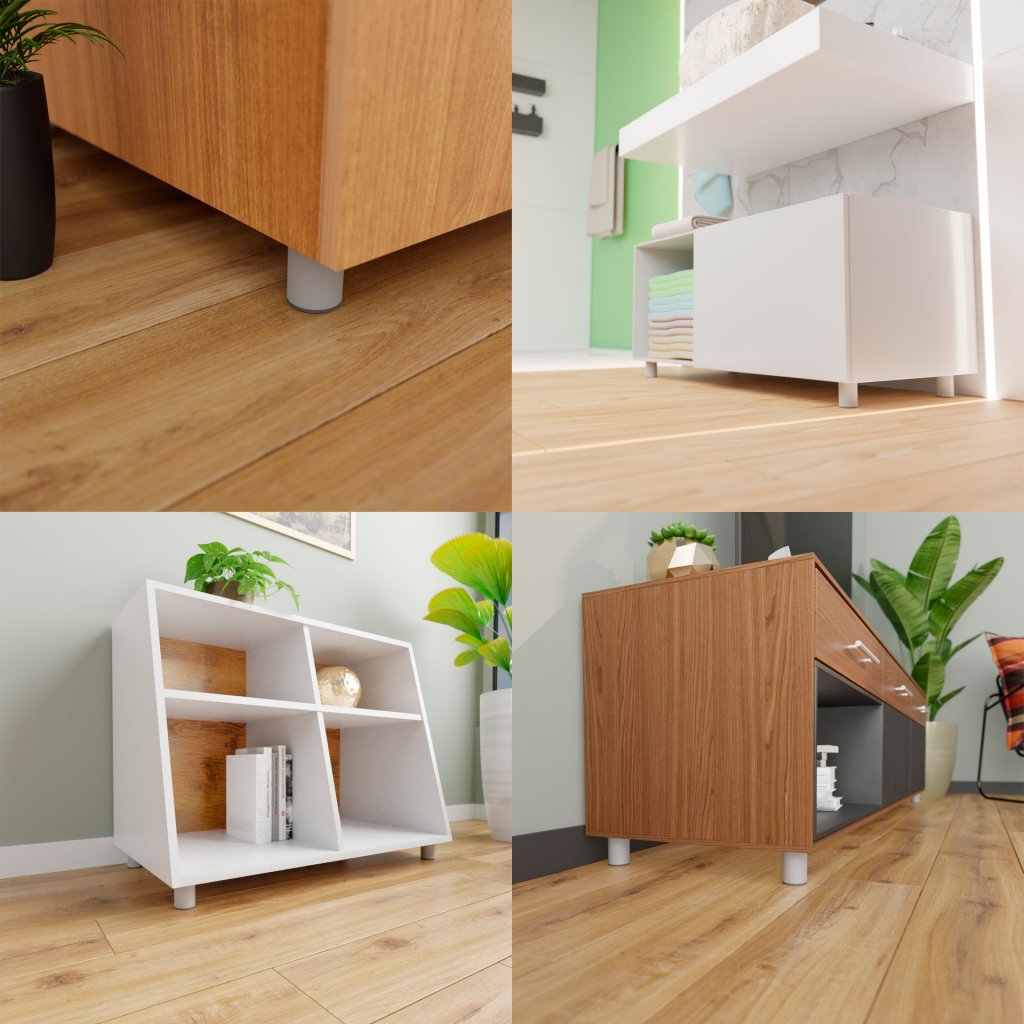 Použití: Plastové nábytkové nohy s nastavitelnou výškou se skvěle hodí pro elevaci skříněk, skříní i komod a dodají tak vašemu interiéru nový svěží nádech. Díky nohám stojí nábytek stabilně a bez viklání na každém povrchu. Uplatníte je i u kreativních DIY projektů.