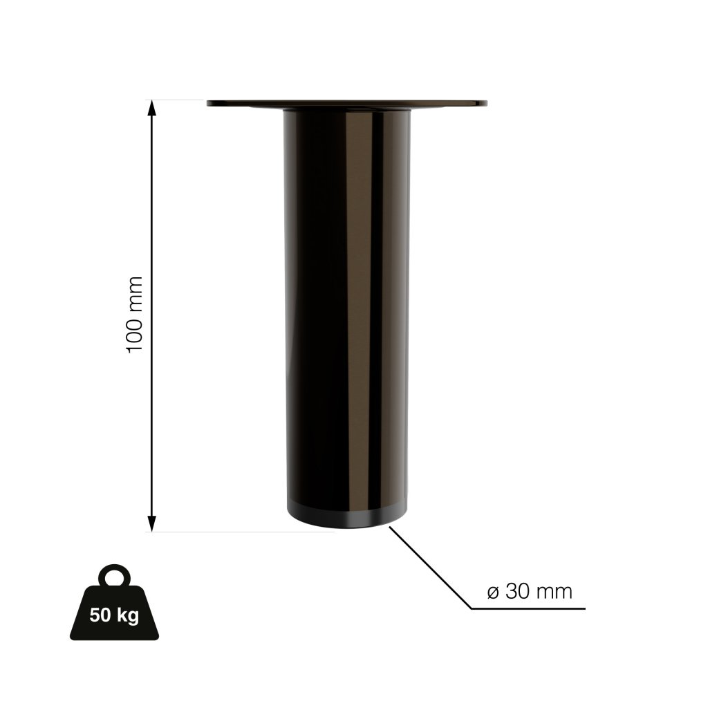 Nábytková noha kulatá, průměr 30mm, výška 100mm, leštěný černý nikl