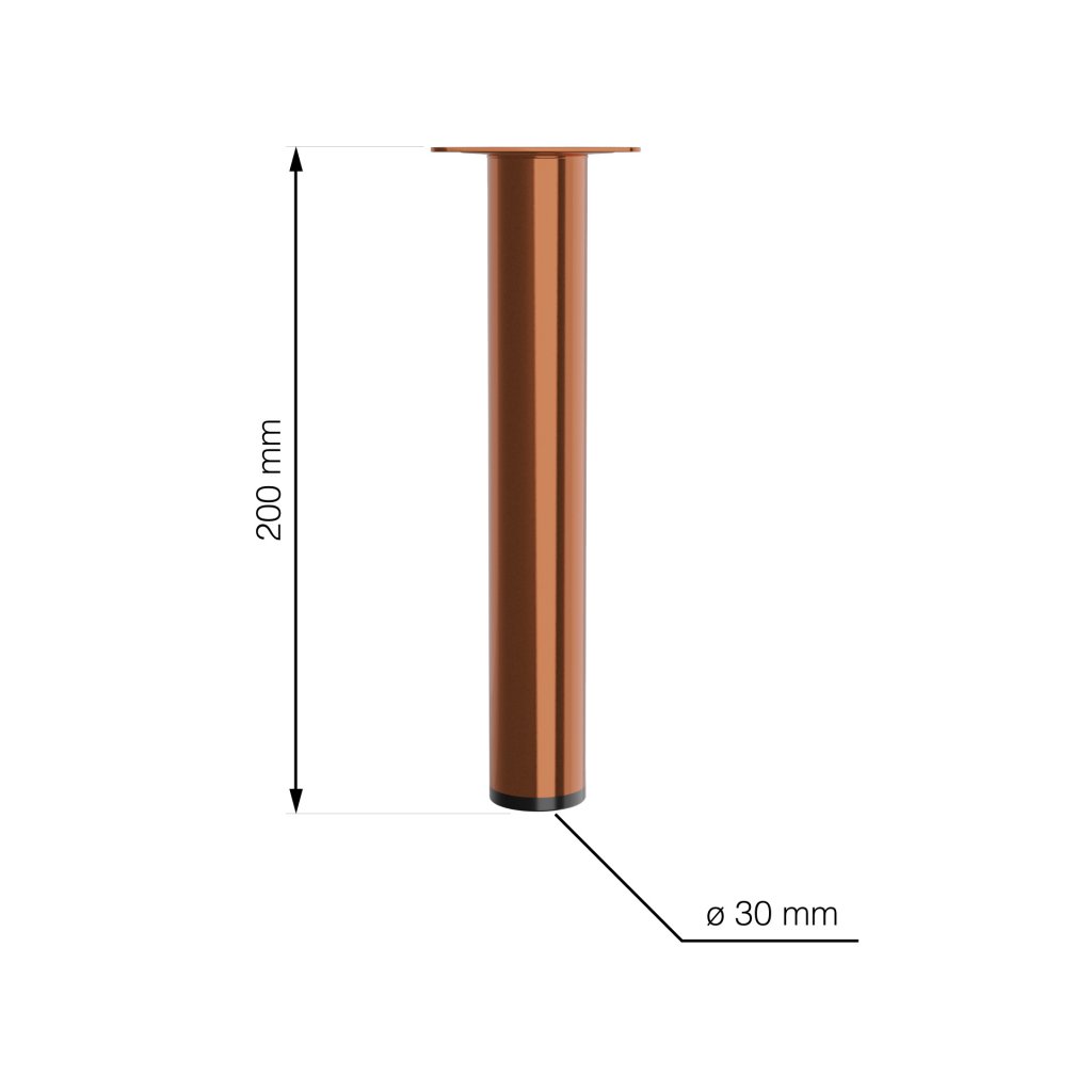 Nábytková noha kulatá, průměr 30mm, výška 200mm, lesklá měď