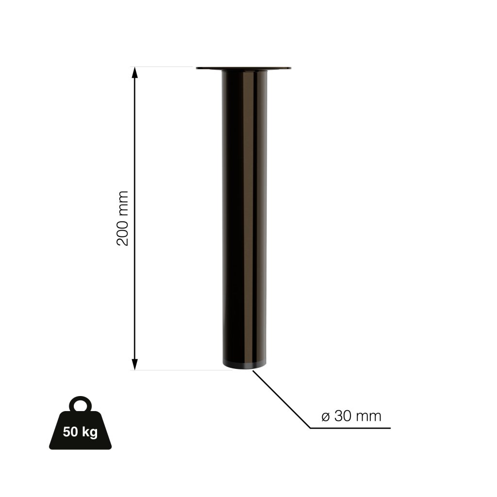 Nábytková noha kulatá, průměr 30mm, výška 200mm, leštěný černý nikl