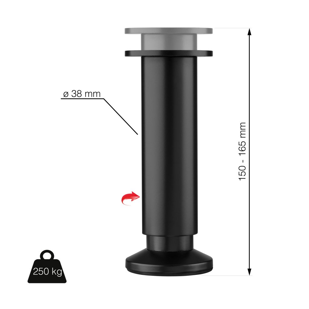 Nábytková noha průměr 38mm, výškově nastavitelná 150-165mm, 250kg, matná černá