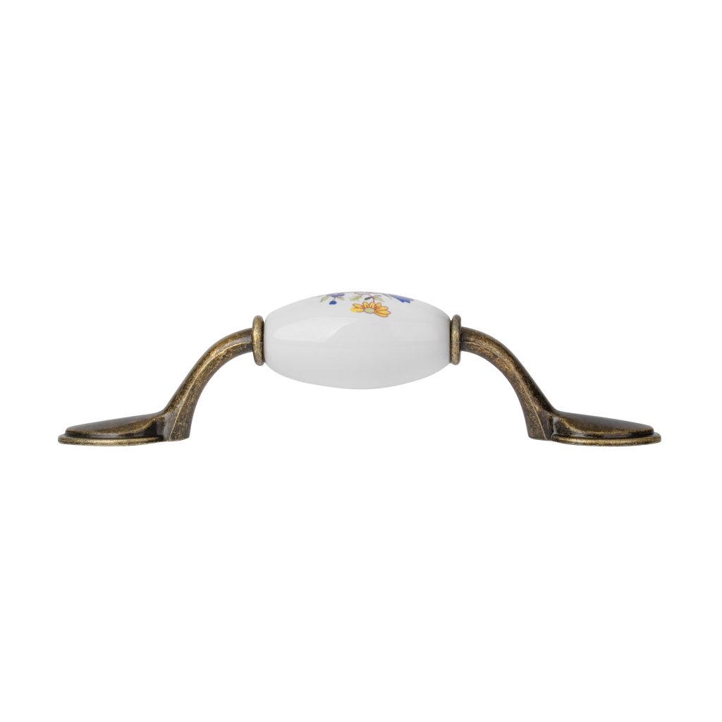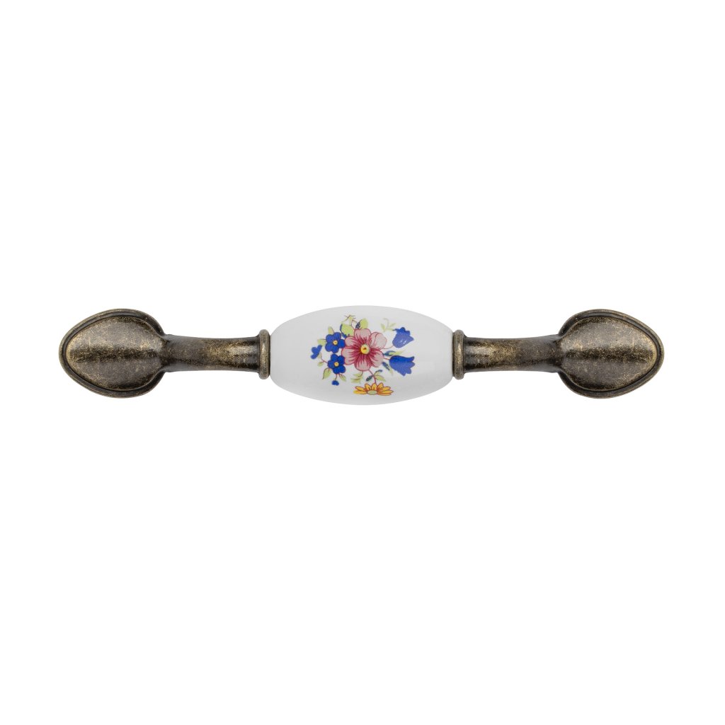 Nábytková úchytka Della rozteč 76mm, květiny, porcelán/antik mosaz