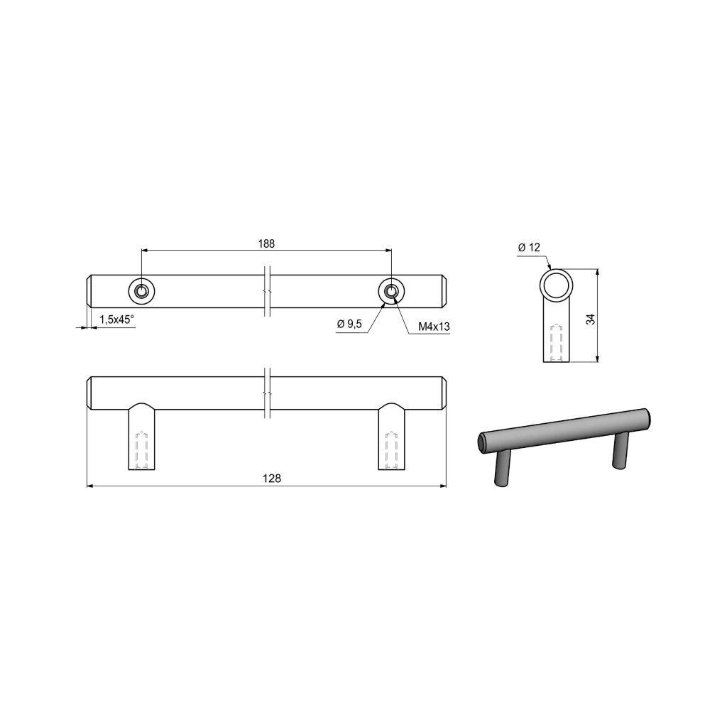 Nábytková úchytka Maxim rozteč 128mm, broušený saténový nikl