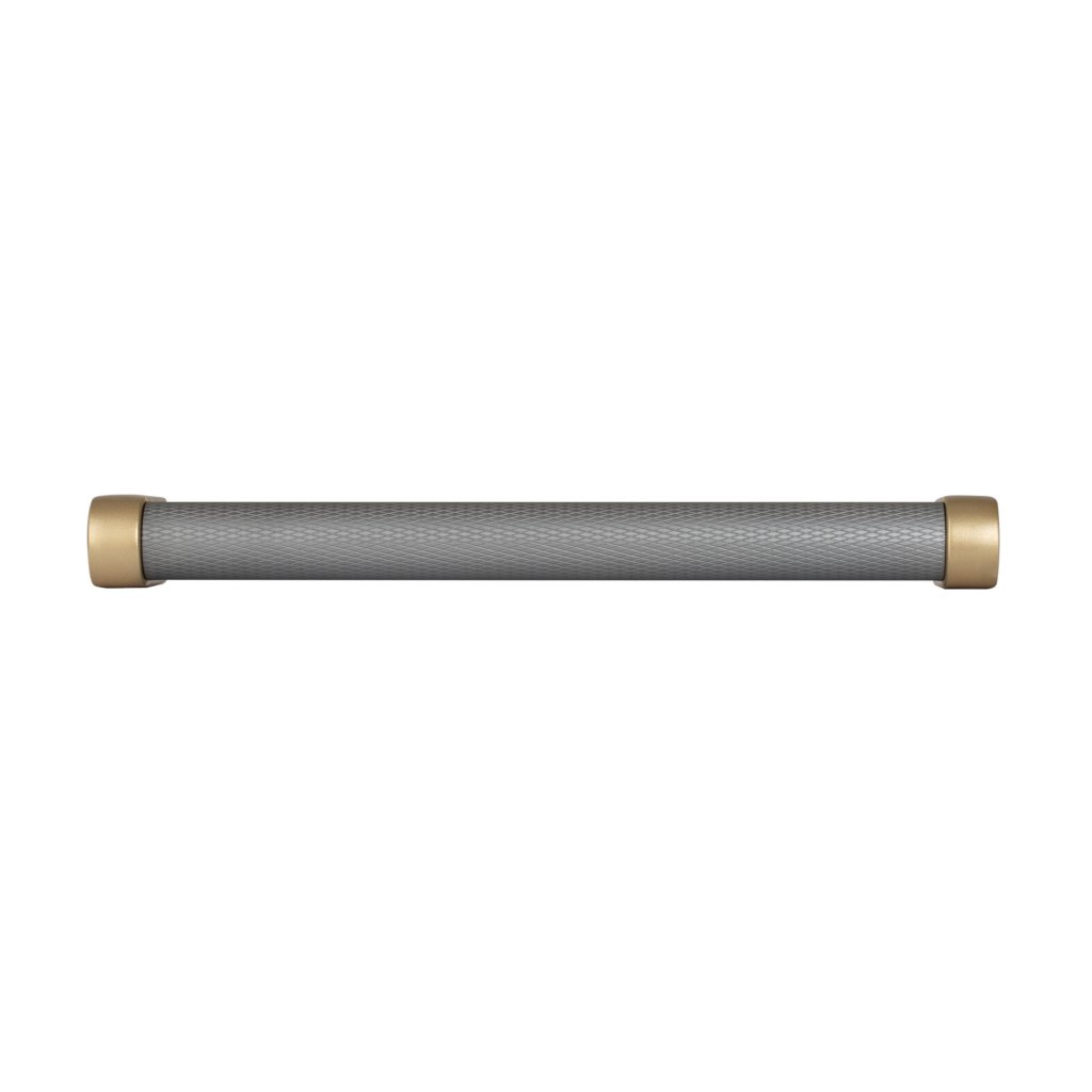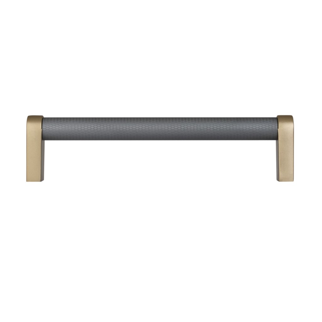 Nábytková úchytka Stirr rozteč 128mm, aluminium, šedá/broušená mosaz