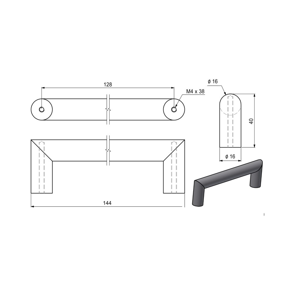 Nábytková úchytka Vazia rozteč 128mm, nerez