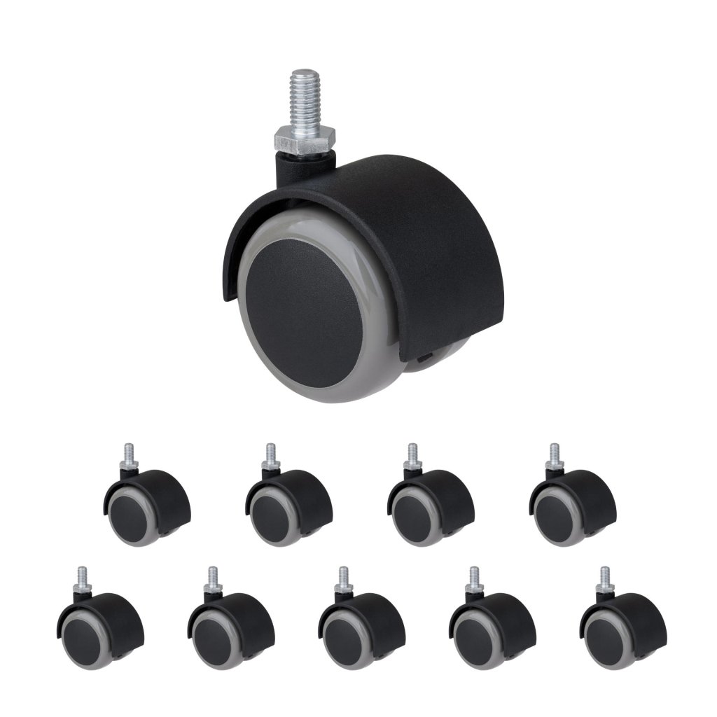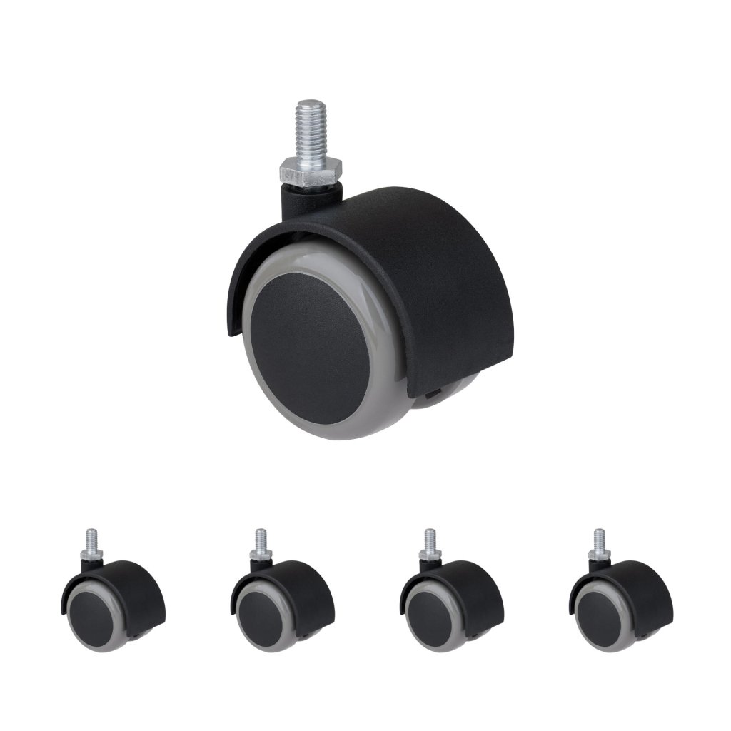 Celoplastové nábytkové dvojkolečko o průměru 50 mm a závitem M8x16 mm s nosností do 50 kg vhodné k uchycení na nábytek.