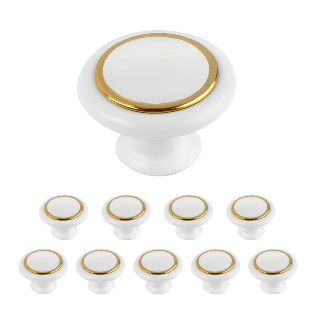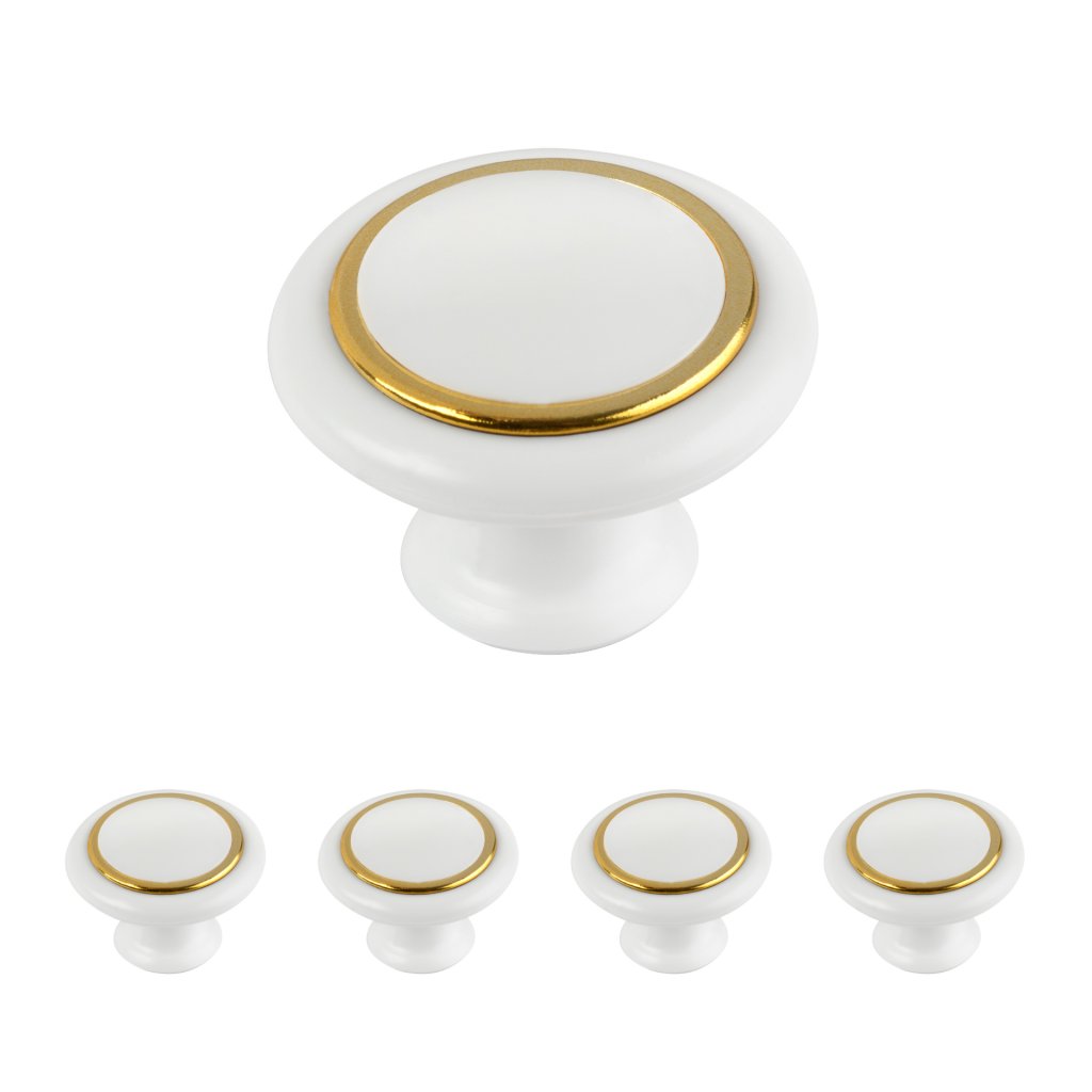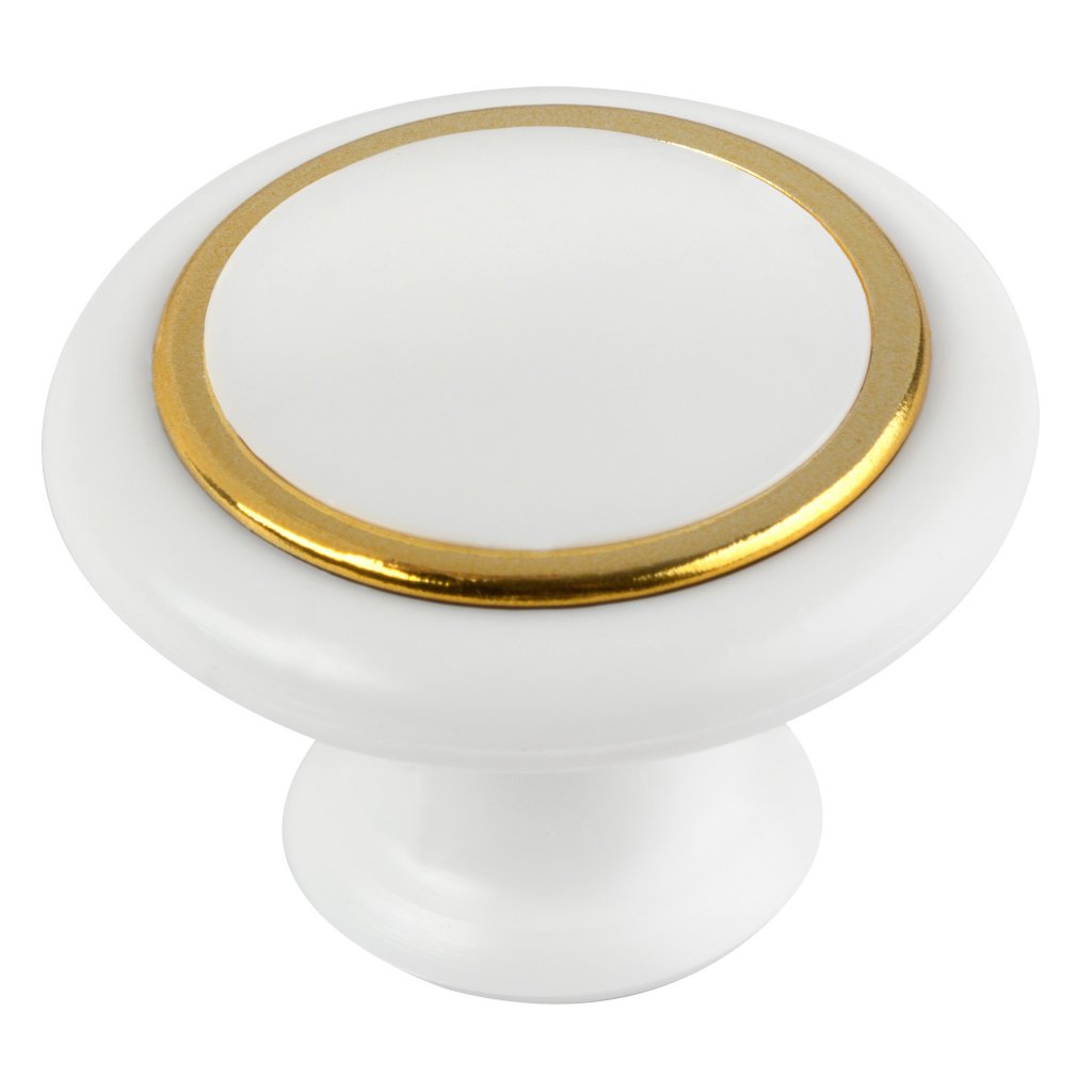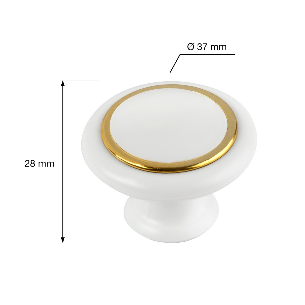 Nábytkový knopek Aqua průměr 37 mm, plast, bílá/zlatá
