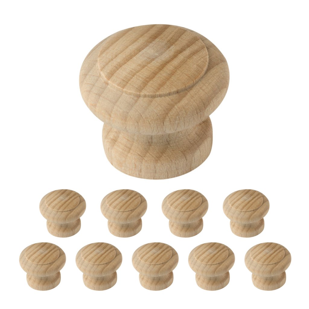 Dřevěné knopky jsou vhodné pro milovníky dřeva a přírodních materiálů. Výborně se hodí k nábytku ve stejném dekoru, avšak i k světlejším (bílá, světle šedá) a tmavším dekorům (tmavá šedá). V naší nabídce dřevěných knopek naleznete dřeviny jako dub, buk a borovice s povrchy jako je surové dřevo, lakované nebo s nátěrem barvy.