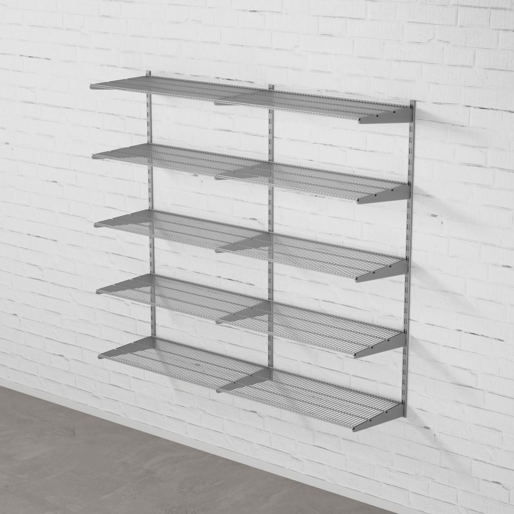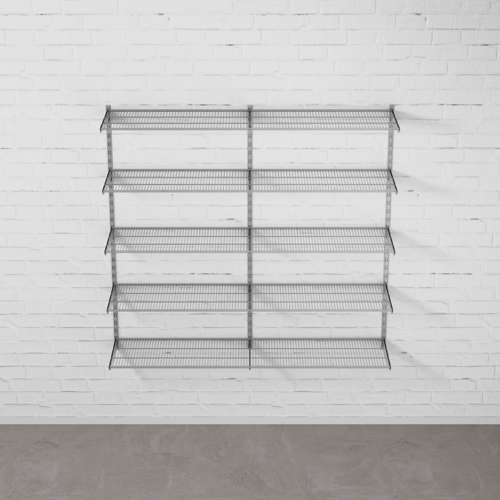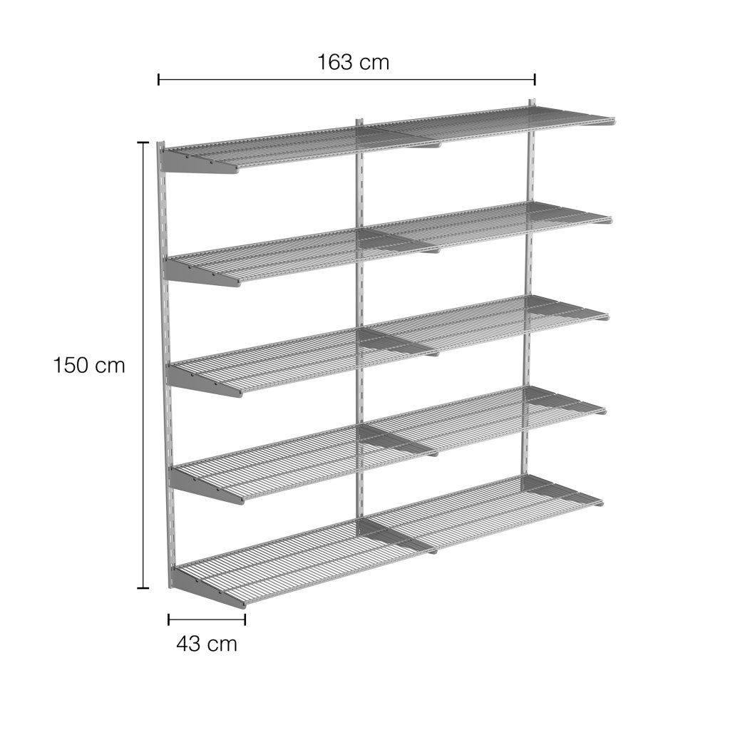 Nástěnný regálový systém – sestava DOUBLE 1500 × 1630 × 430 mm ve stříbrném/šedém provedení