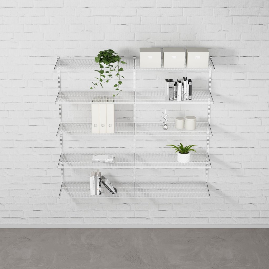 Nástěnný regálový systém – sestava DOUBLE 1500 × 1630 × 330 mm v bílém provedení