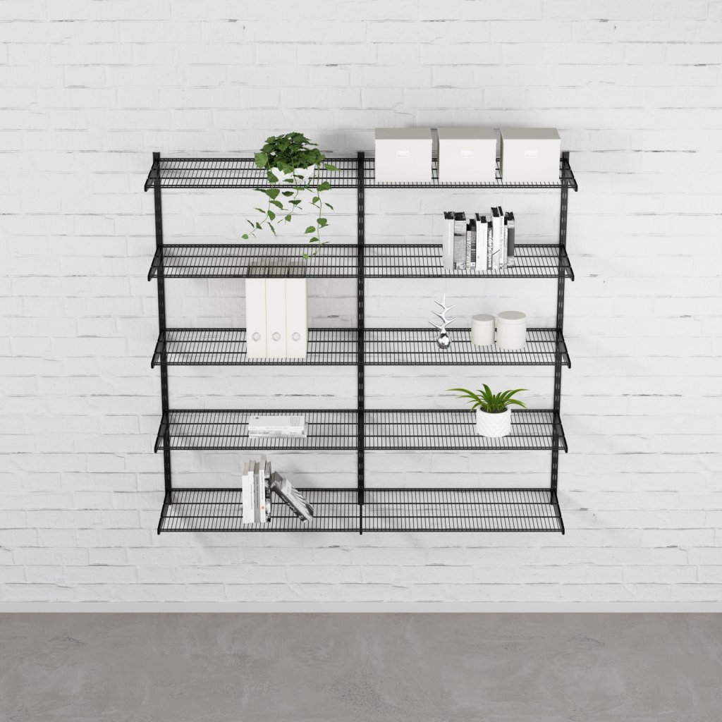 Nástěnná regálová sestava DOUBLE, 1500x1630x330 mm, černá