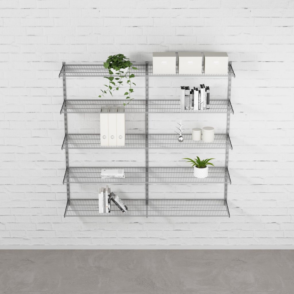 Nástěnný regálový systém – sestava DOUBLE 1500 × 1630 × 330 mm ve stříbrném provedení