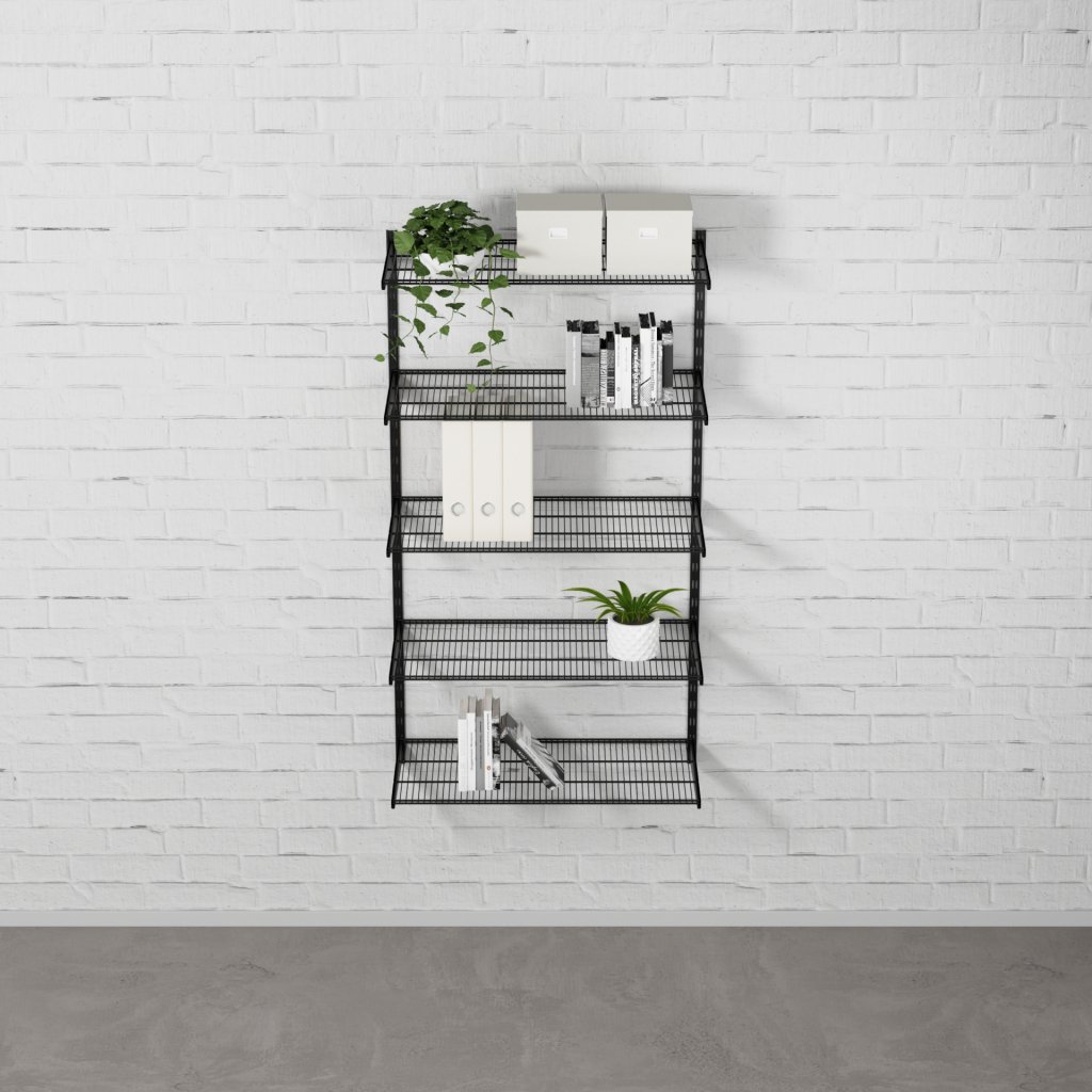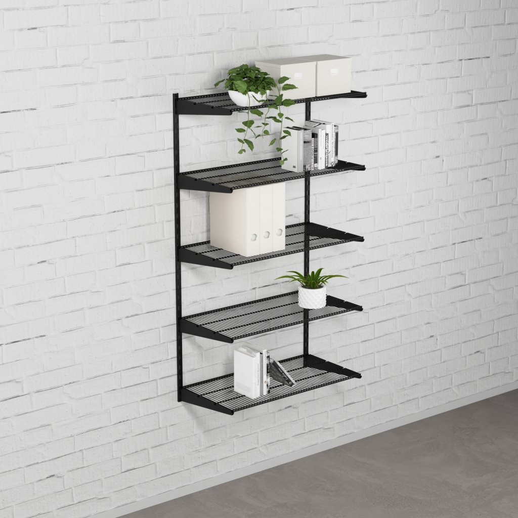 Nástěnný regálový systém – sestava SINGLE 1500 × 830 × 330 mm v černé barvě