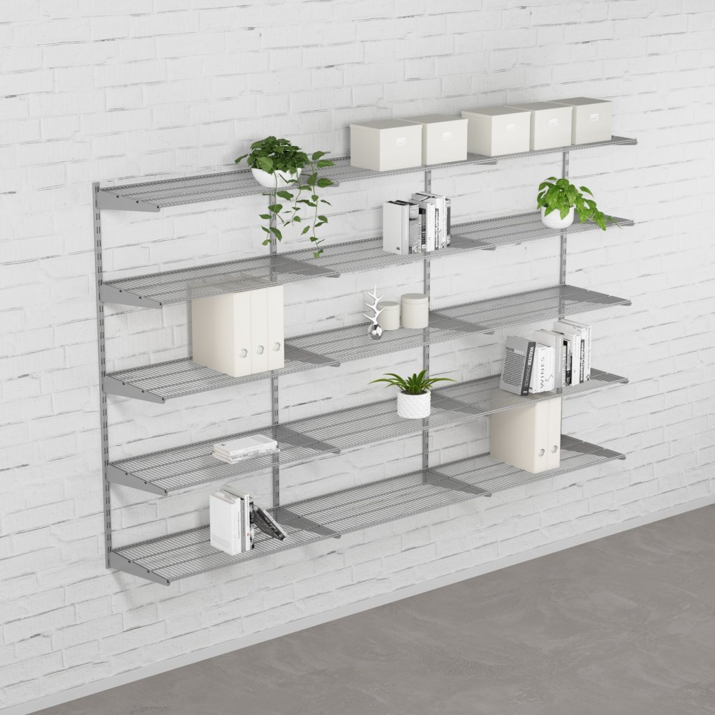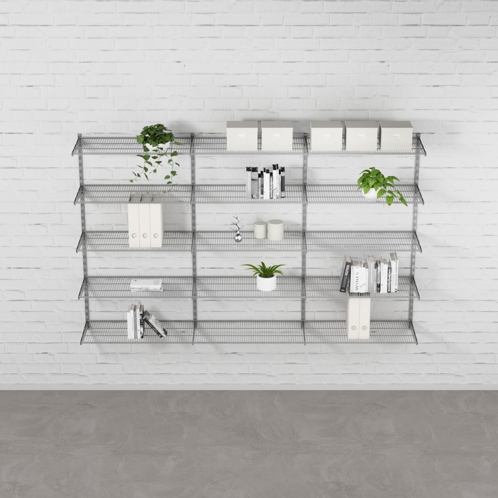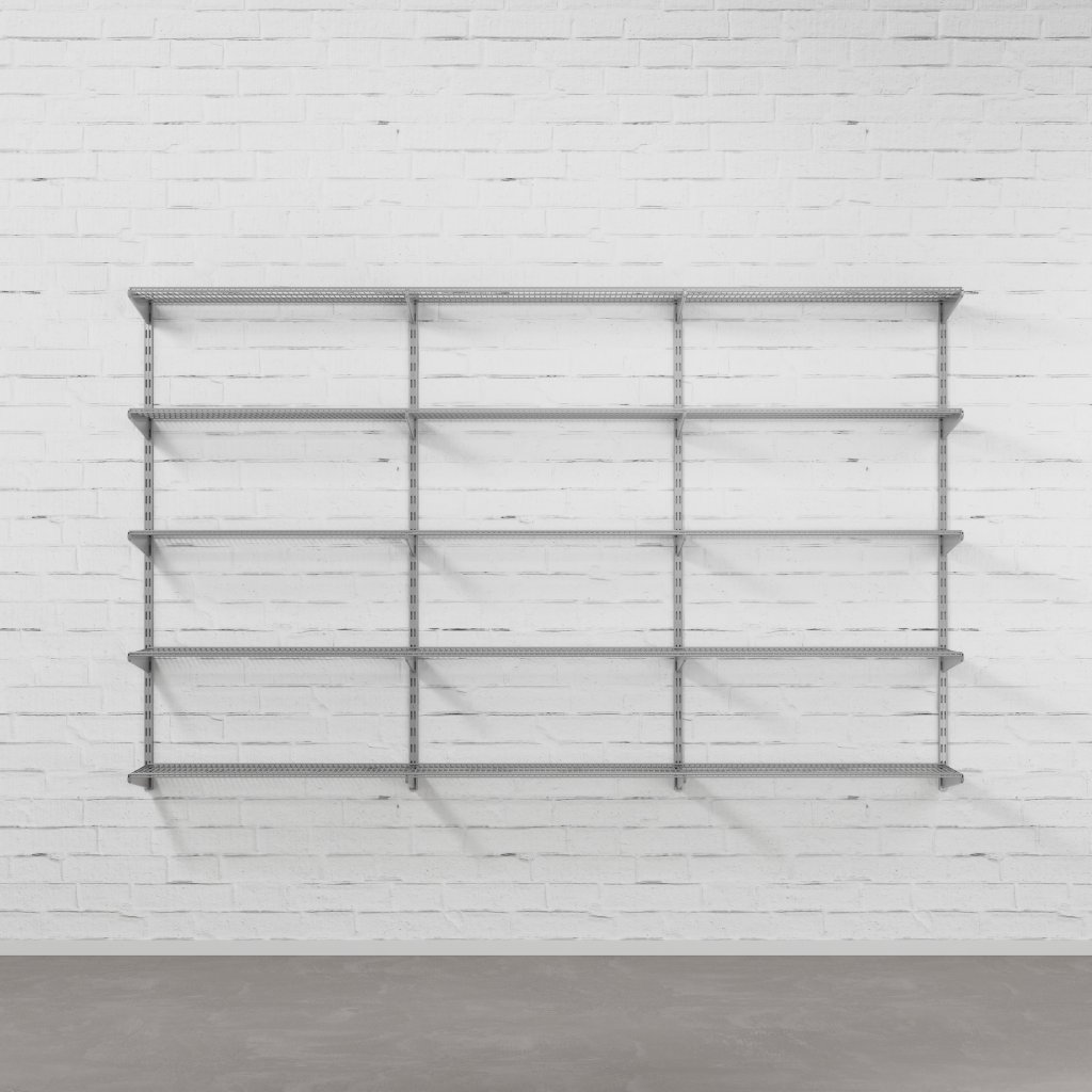 Nástěnný regálový systém – sestava TRIPLE 1500 × 2430 × 330 mm ve stříbrné barvě