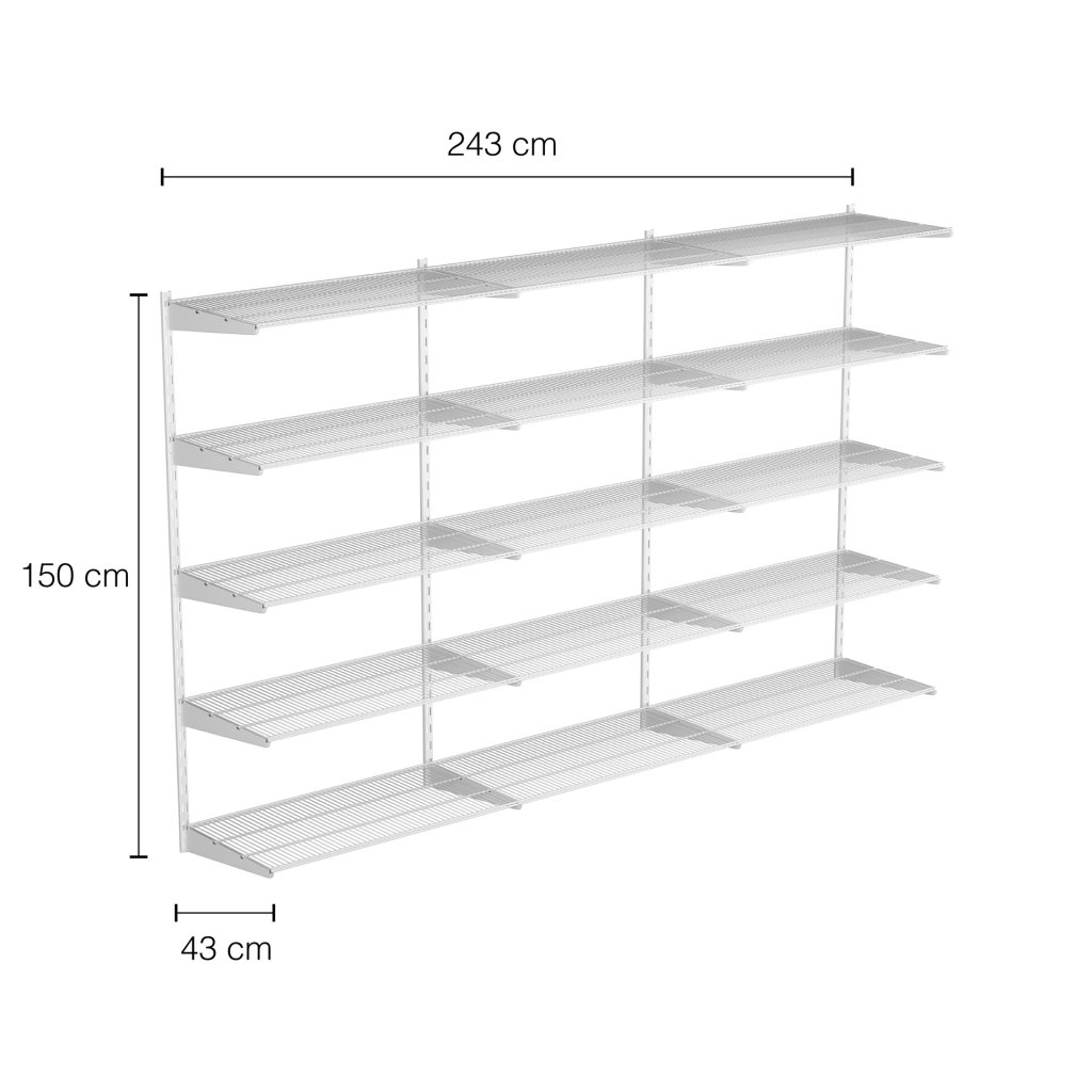 Nástěnný regálový systém – sestava TRIPLE 1500 × 2430 × 430 mm v bílé barvě