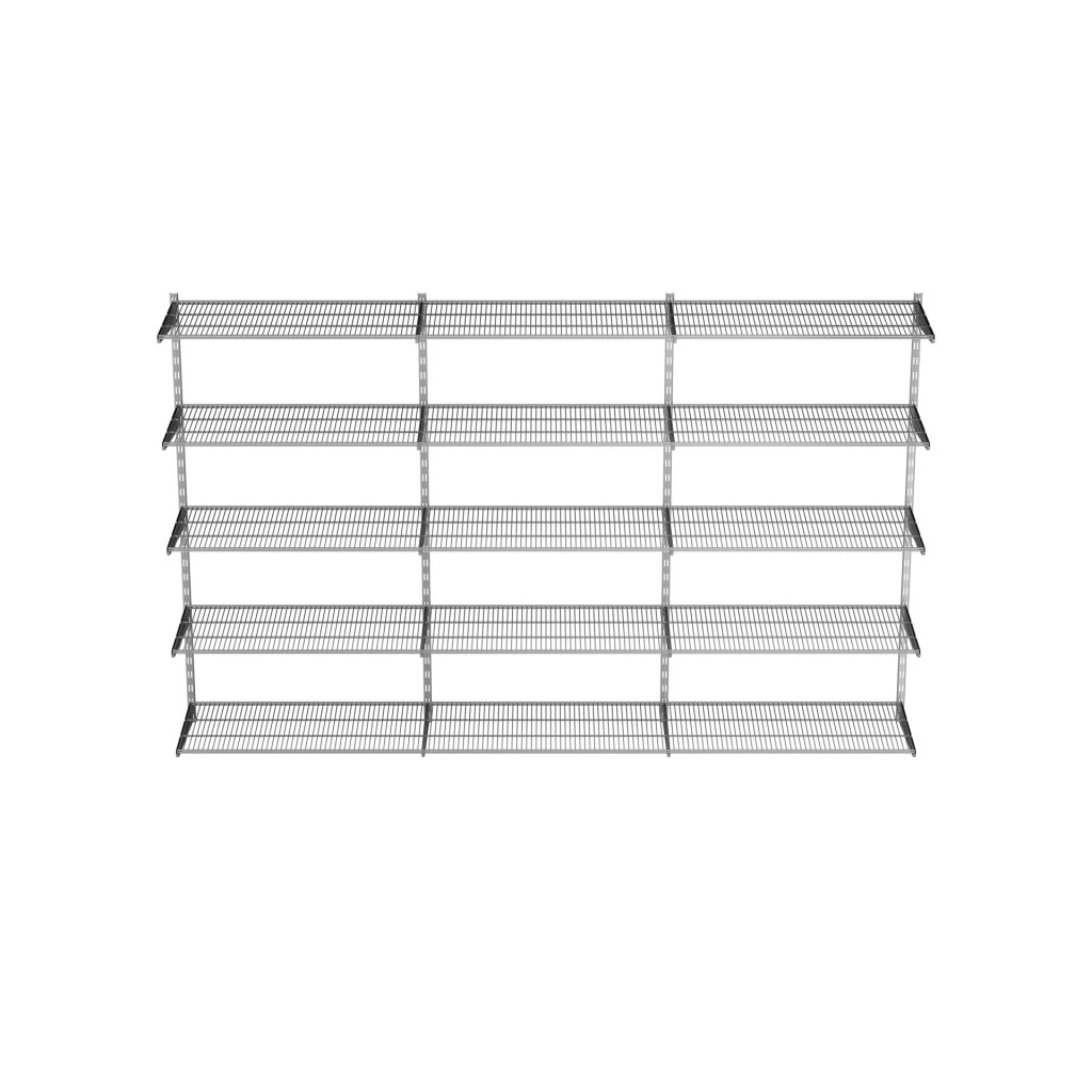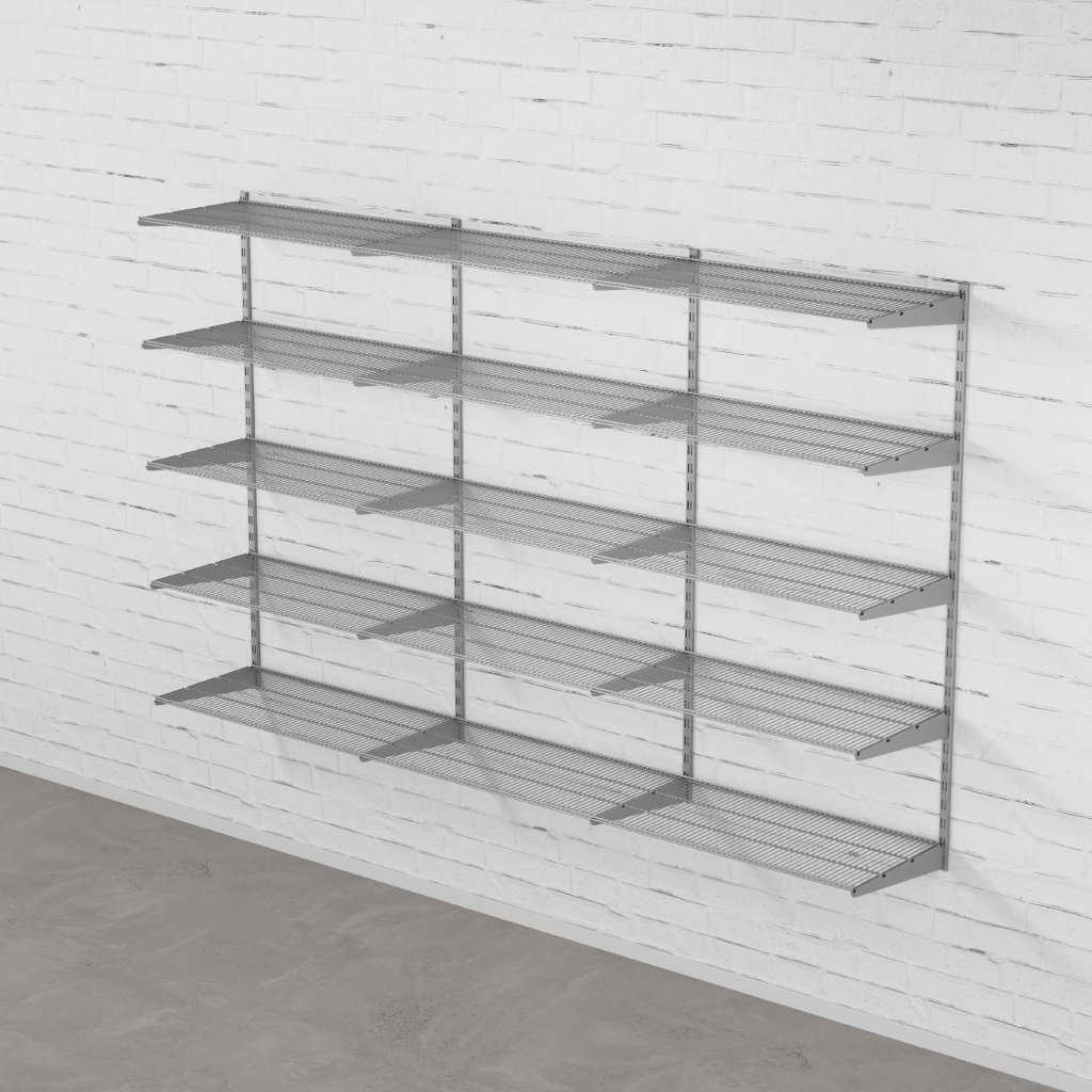 Nástěnný regálový systém – sestava TRIPLE 1500 × 2430 × 430 mm ve stříbrné barvě
