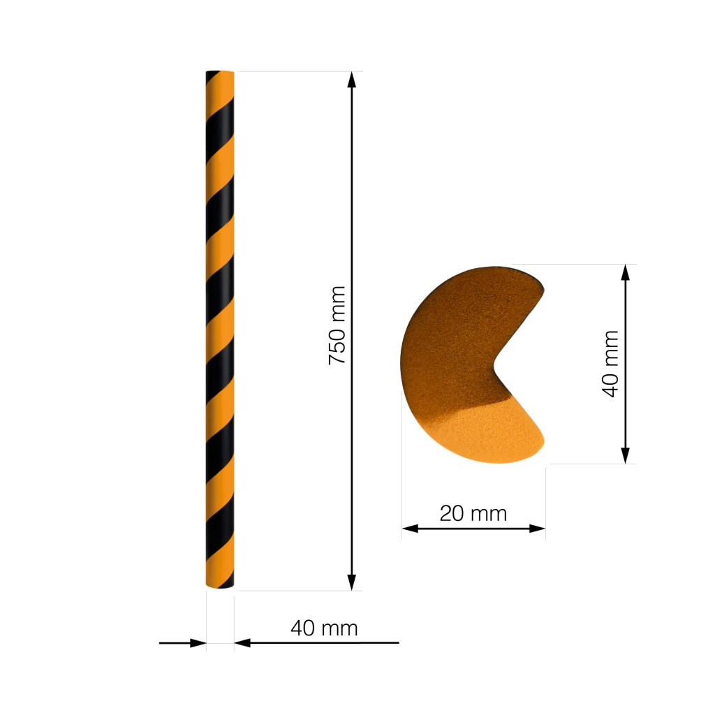 Samolepicí ochranný pás vyrobený z polyuretanové pěny velmi efektivně tlumí náraz. Využívaný zejména jako bezpečnostní značení ve skladech, kde snižuje nebezpečí vzniku úrazu nebo poškození rohů a stěn. Také vhodná ochrana pro rohy regálů a jiných kovových součástí skladů a dílen.