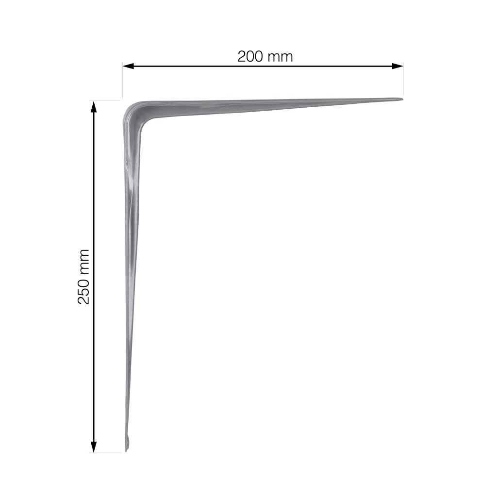 Plechová konzole 250x200mm, nosnost 18 kg, stříbrná