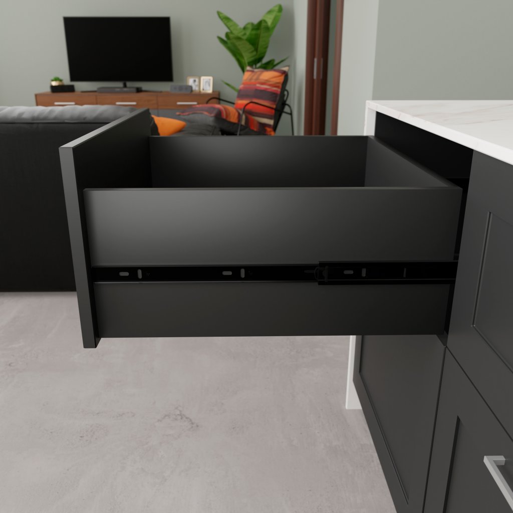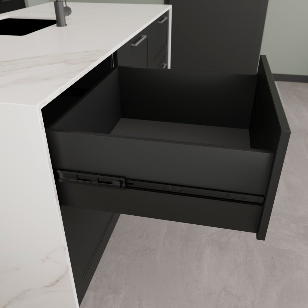 Plnovýsuv je vyroben z vysoce kvalitní oceli s černou povrchovou úpravou. Výsuv vás přesvědčí perfektním chodem a velmi vysokou stabilitou. Nosnost sady je až 35kg/1 pár. Nosnost je přímo úměrná jednomu páru.