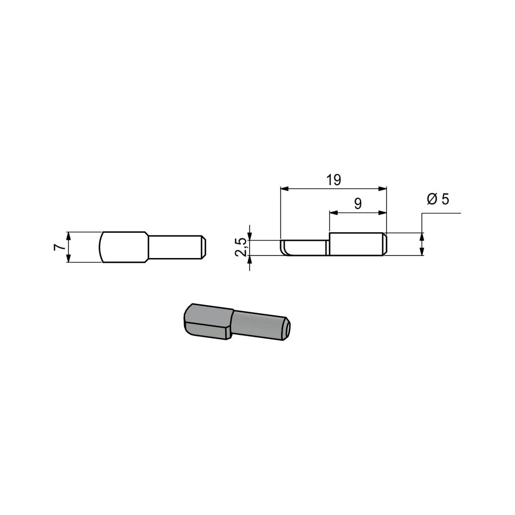 Podpěrka polic, průměr 5mm, 19x5x8mm, 8 ks