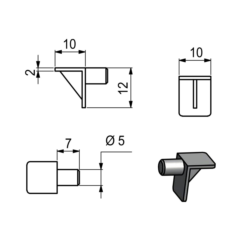 POUŽITÍ: Montáž je snadná a během chvilky hotová. Policové podpěry jsou vhodné pro zasunutí do předvrtaných otvorů o průměru 5 mm.