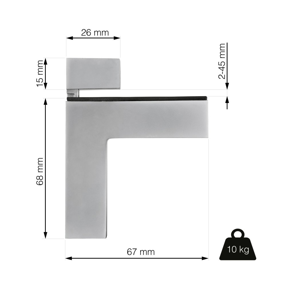 Podpěrka polic hranol, 2-45mm, nosnost 10 kg, matný chrom, 1 ks