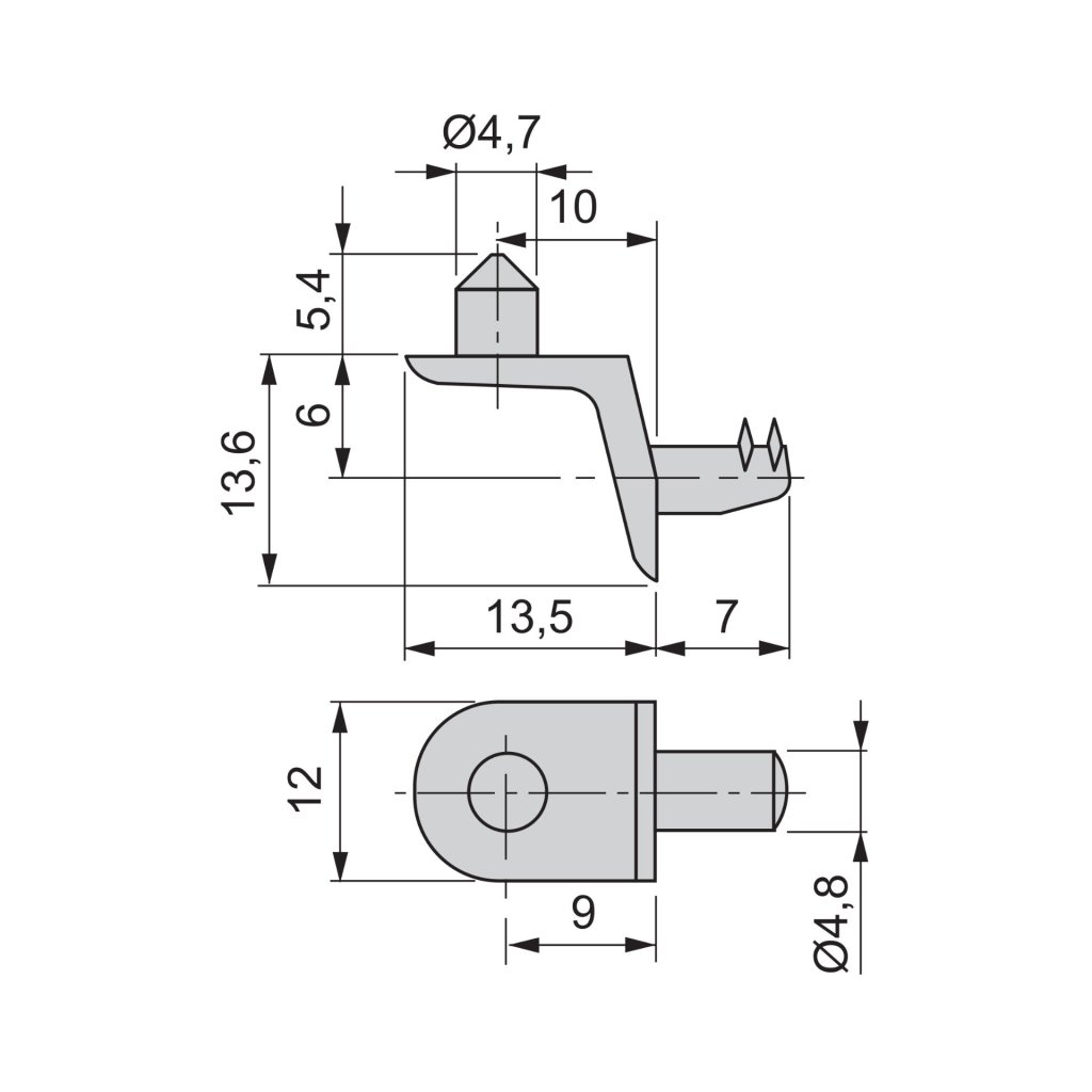 Podpěrka polic s čepem, průměr 5mm, 8 ks
