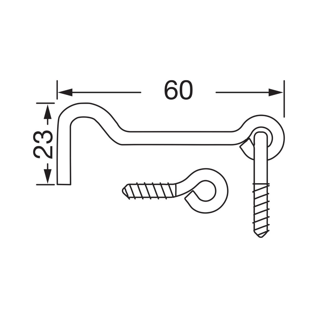Pojistný háček včetně opěrného kroužku a pojistného kroužku. Vhodný pro zavírání dveří, bran, klapek, beden nebo okenic.