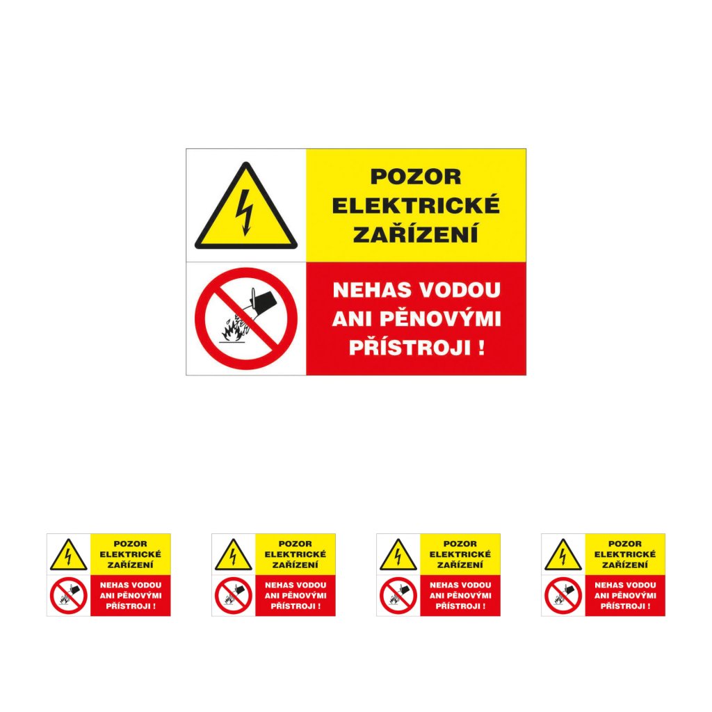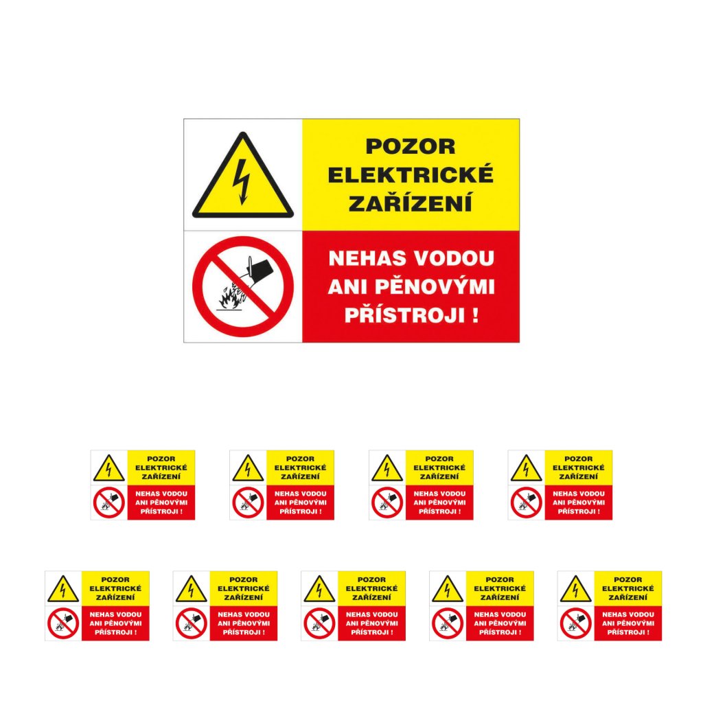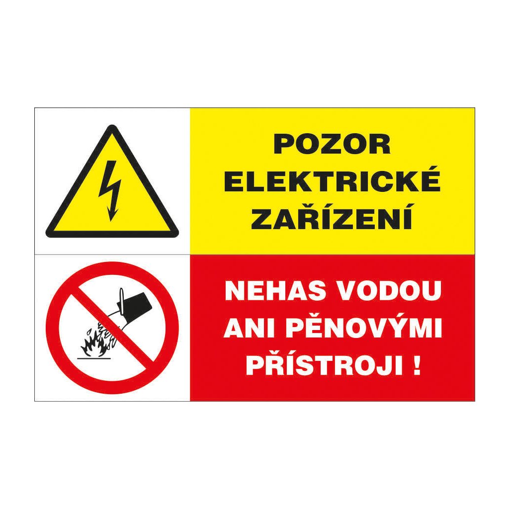 Pozor, elektrické zařízení/Nehas vodou ani pěnovými přístroji, 80x50mm, samolepka