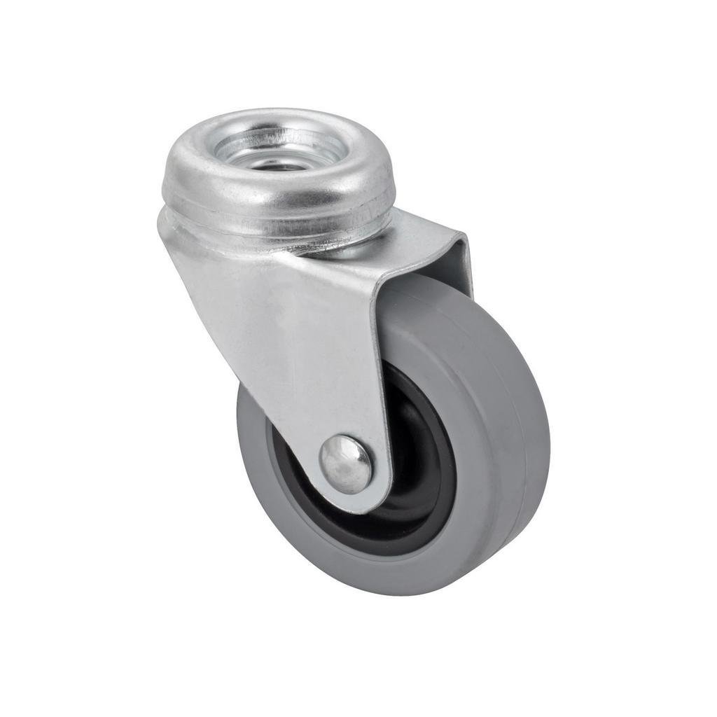 Otočné přístrojové kolečko o průměru 50 mm se středovým šroubem. Kolečka pro tvrdé podlahy jako jsou dlažby, dřevěné plovoucí podlahy, průmyslové podlahy.