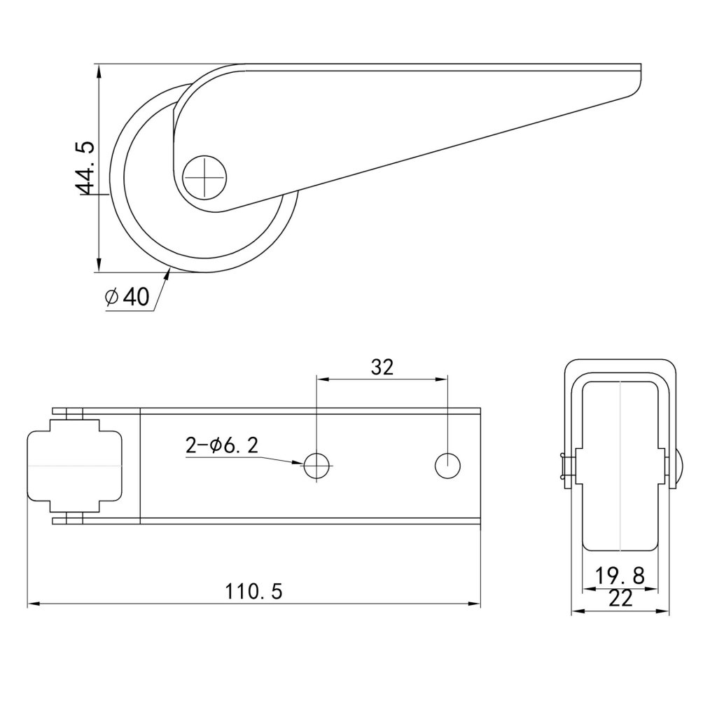 Přístrojové kolečko o průměru 40 mm. Kolečka pro měkké podlahy lze využít na kobercích/PVC podlahách.