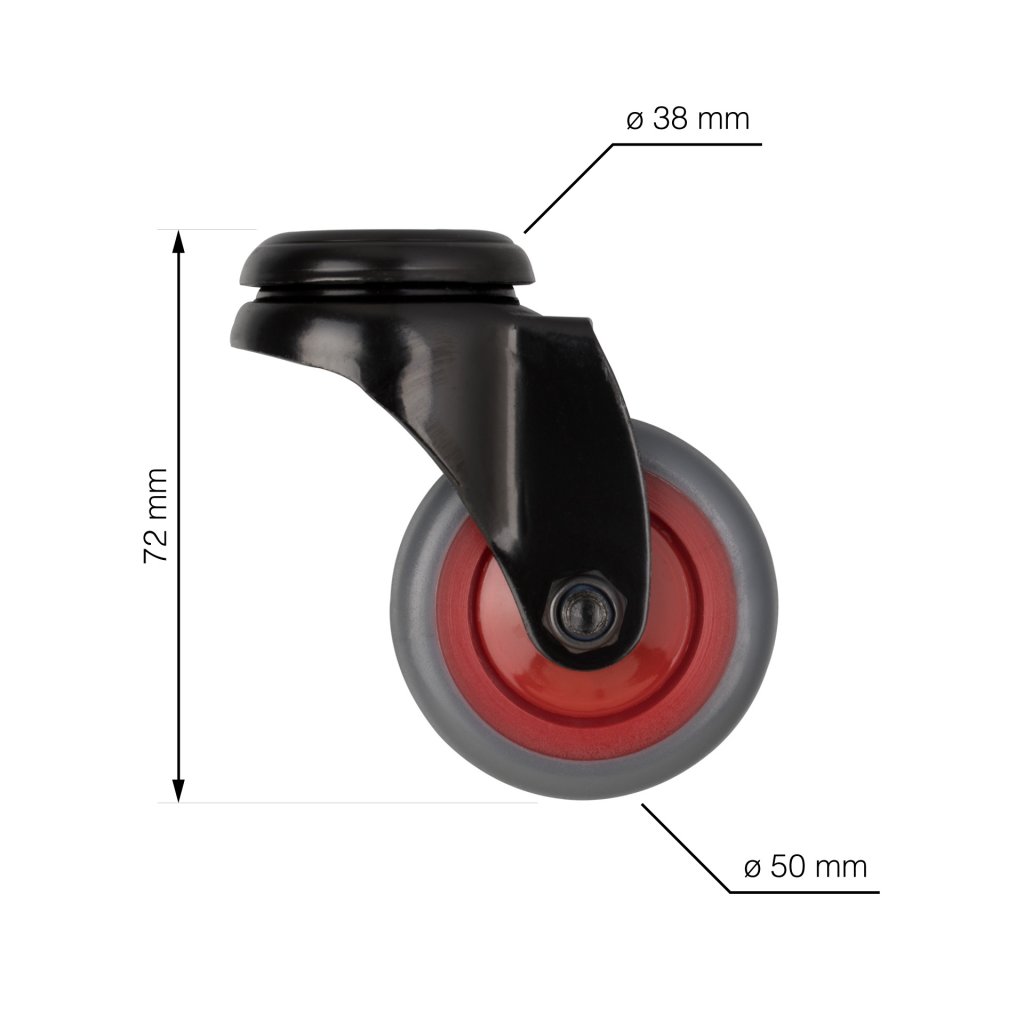 Otočné přístrojové kolečko o průměru 50 mm určené pro tvrdé podlahy. Kolečka pro tvrdé podlahy jako jsou dlažby, dřevěné plovoucí podlahy, průmyslové podlahy.